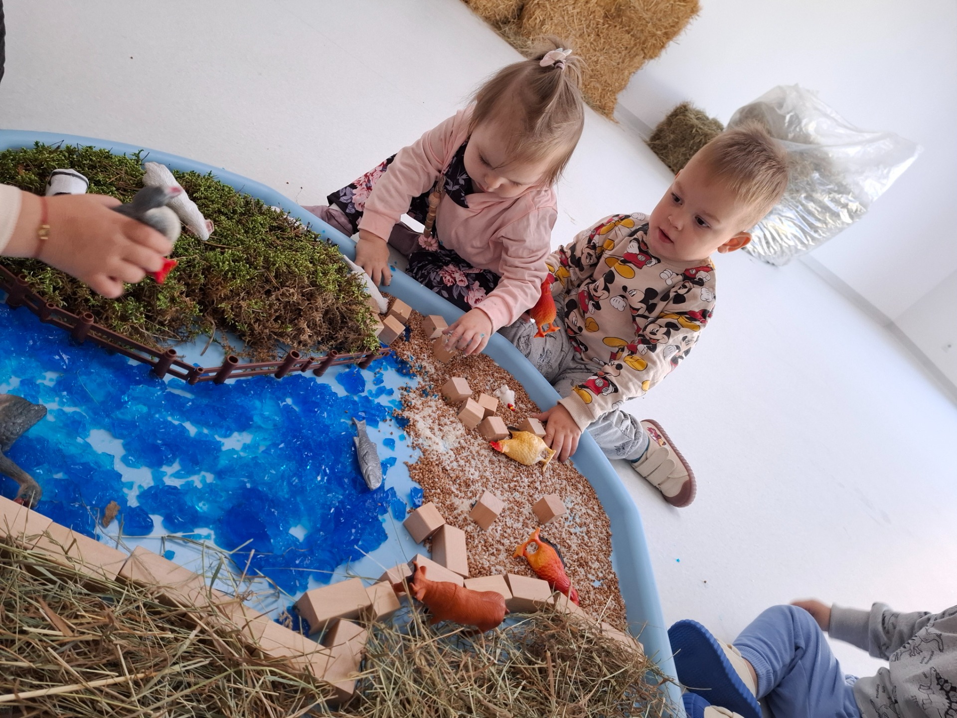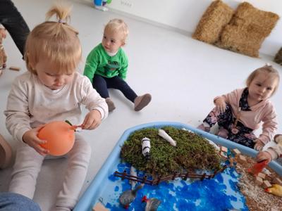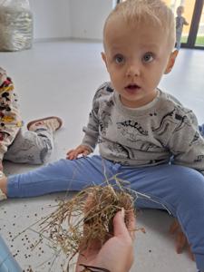 Podczas zajęć dzieci oglądały, dotykały i przesypywały różne faktury rozwijając swoje zmysły.