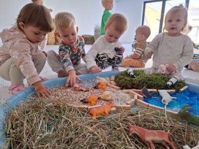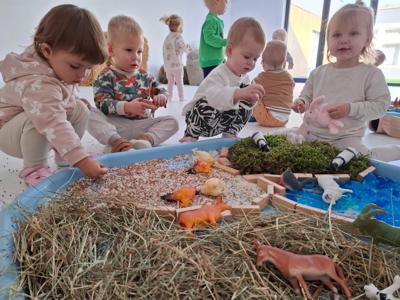 Z okazji Dnia Zwierząt w Naszym Żłobku zorganizowaliśmy zajęcia sensoryczno - edukacyjne.