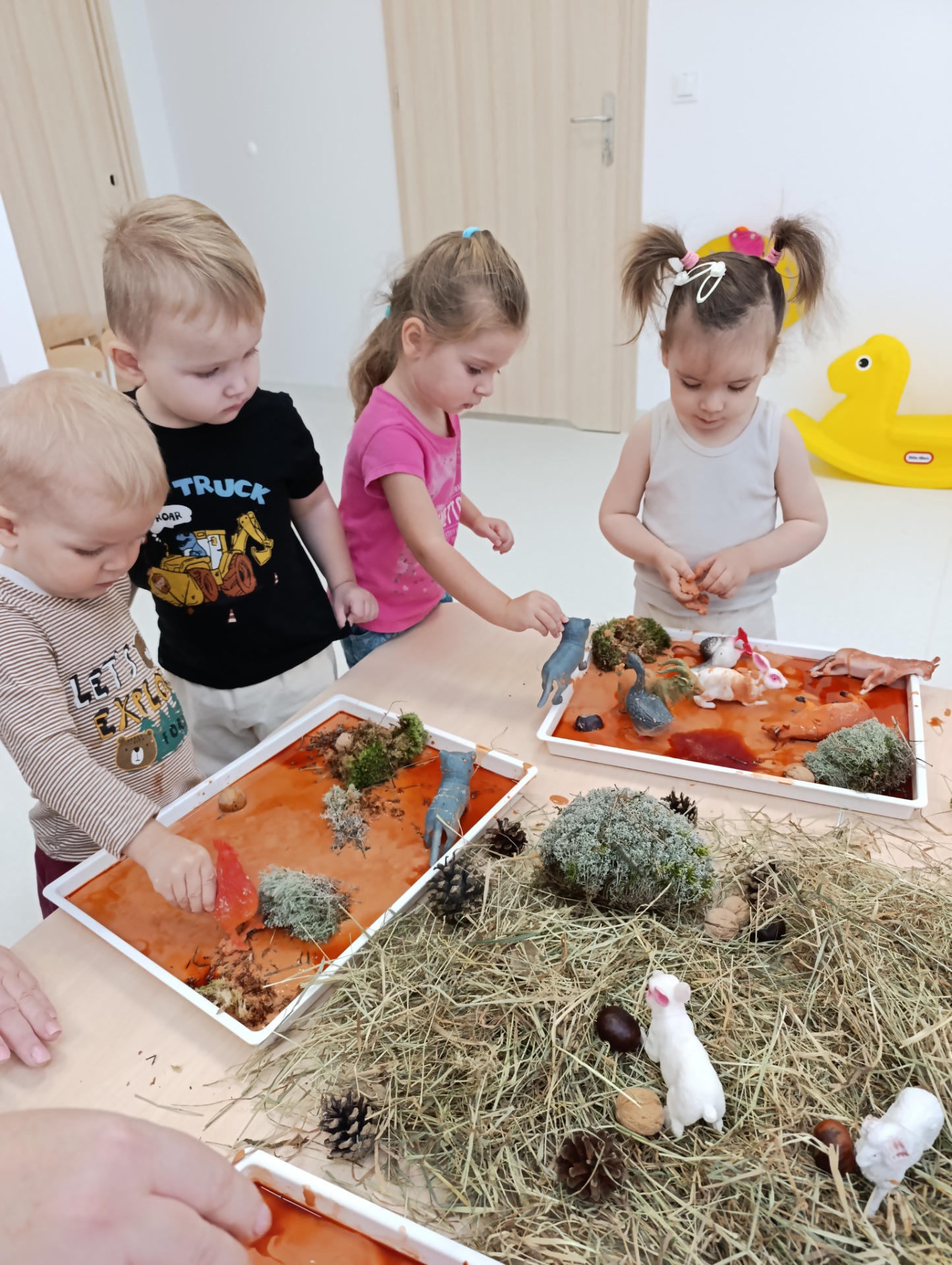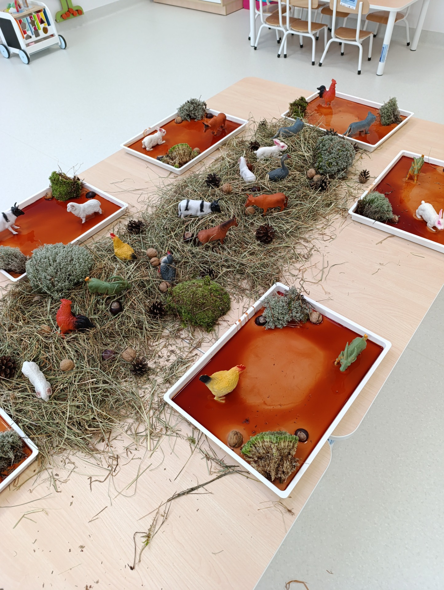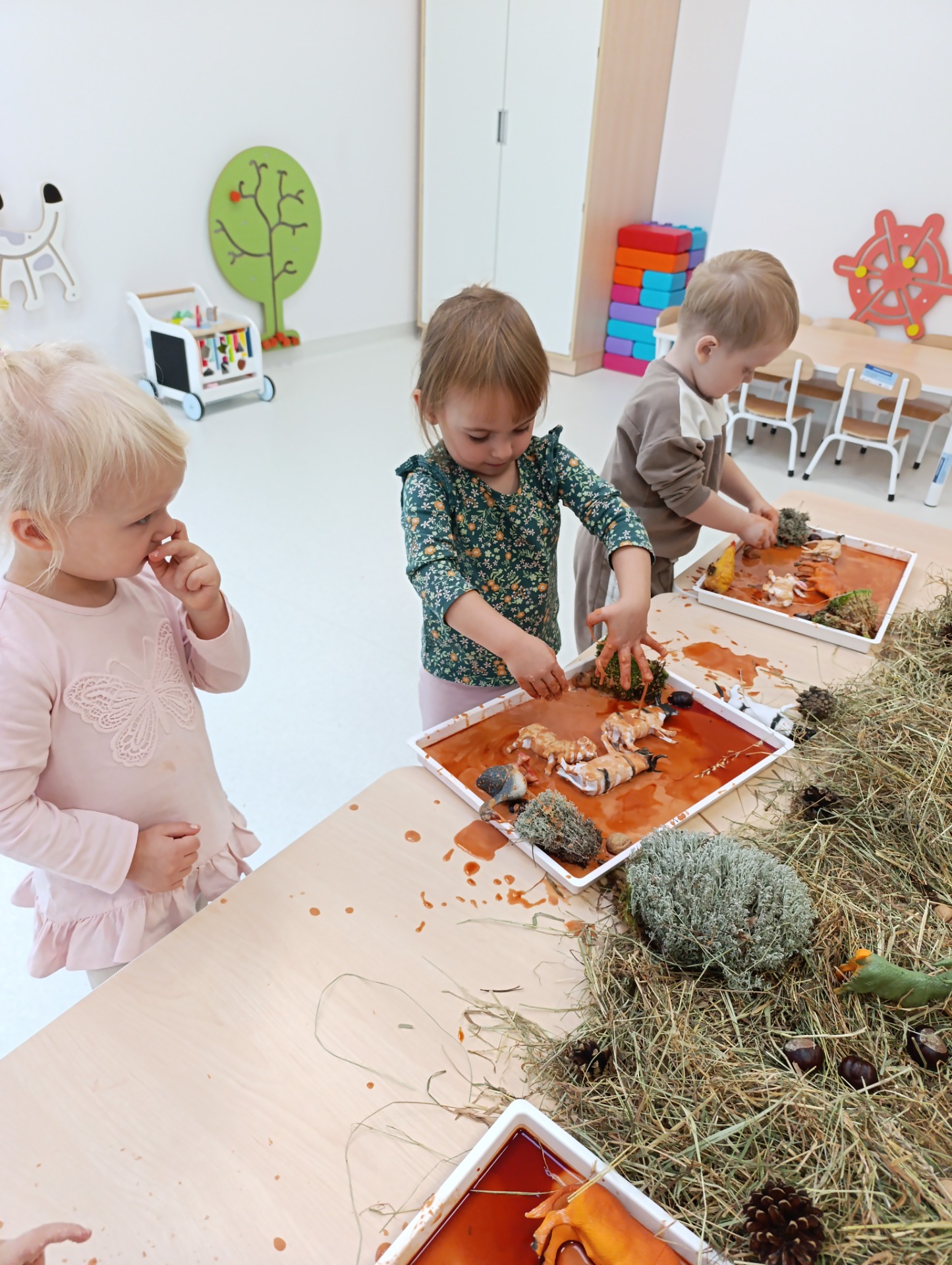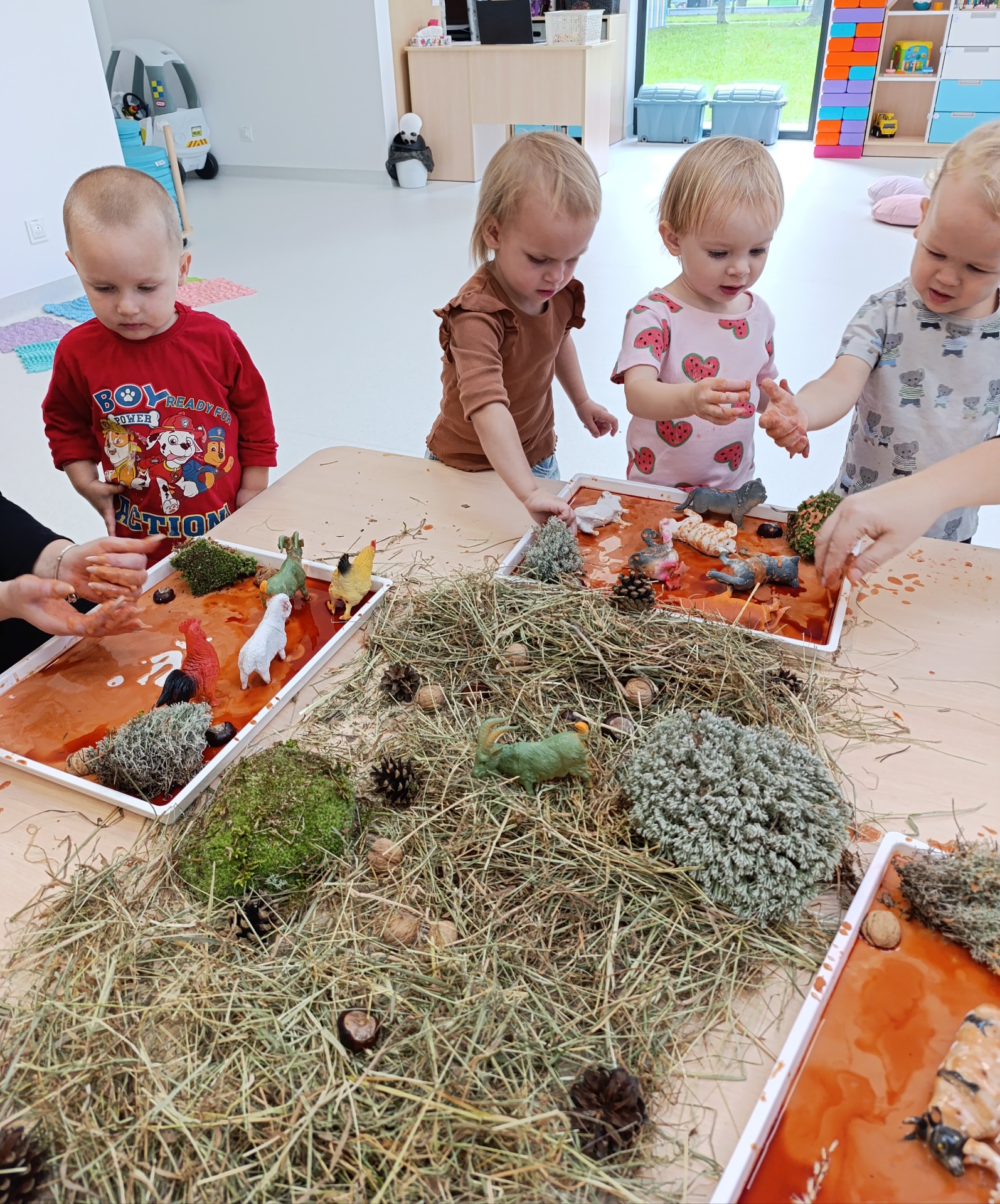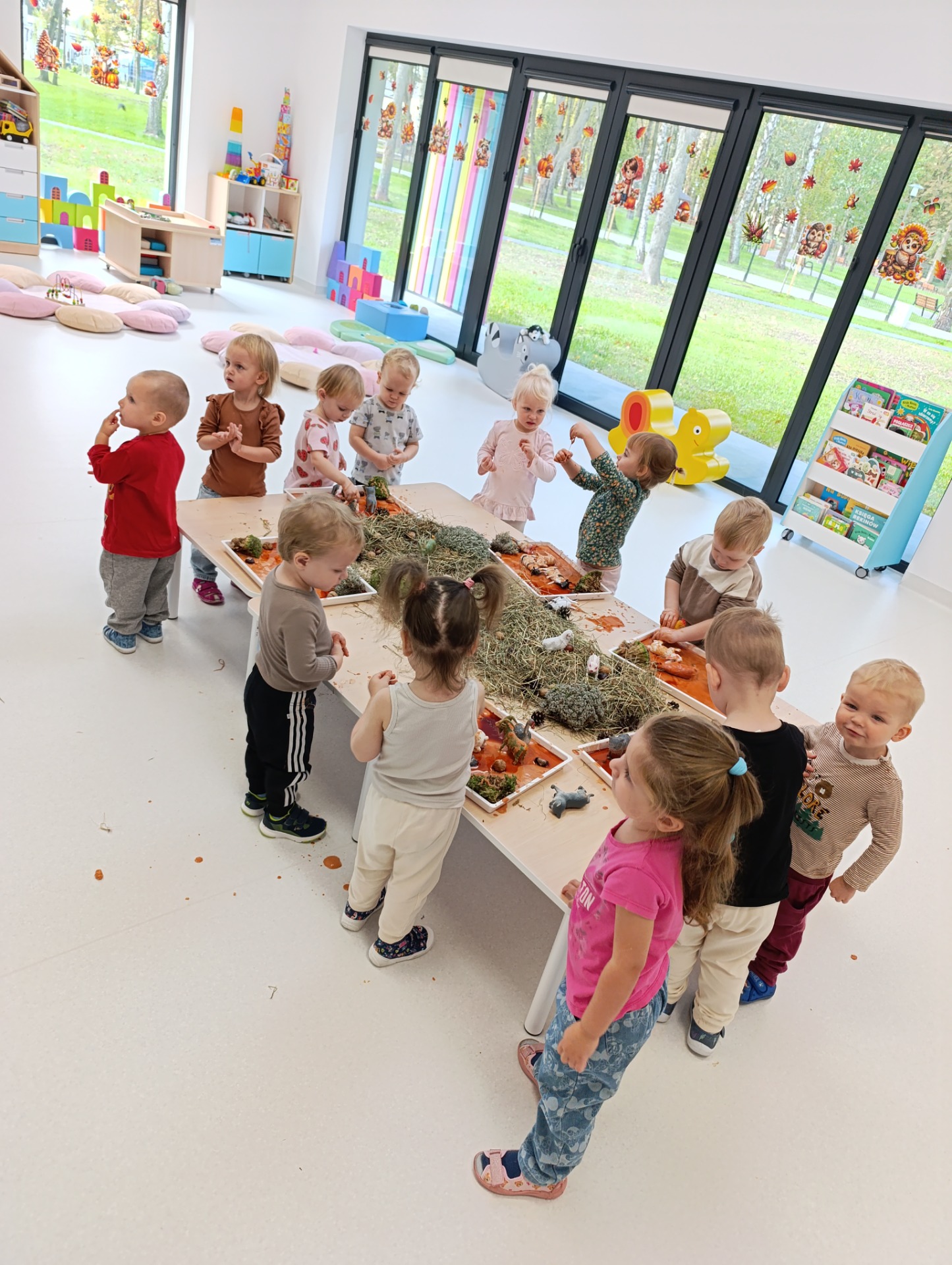 Dzieci z ogromną radością zanurzały w niej swoje ulubione figurki zwierząt 🐄🐖🐇🐑 doskonaląc ćwiczenia