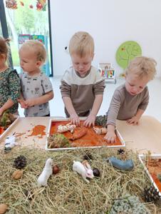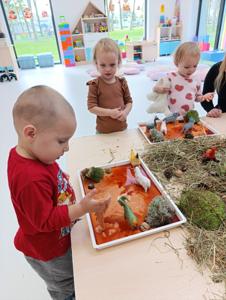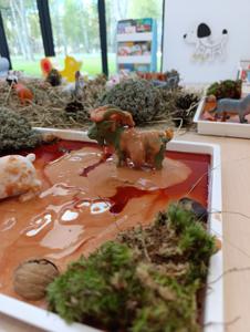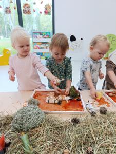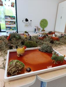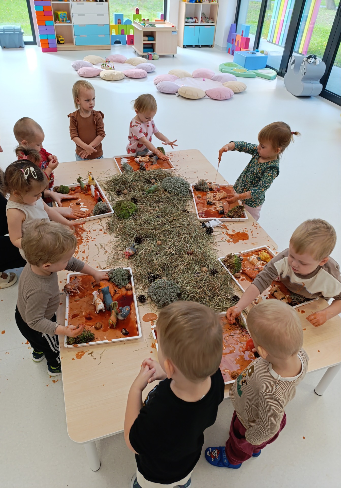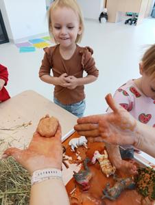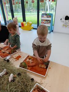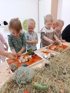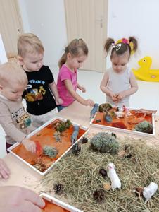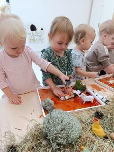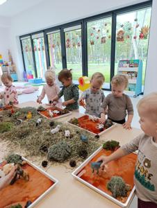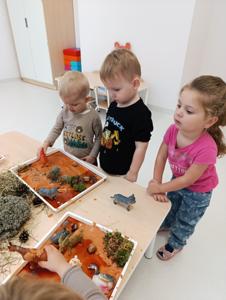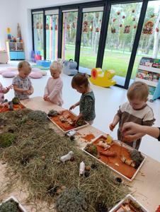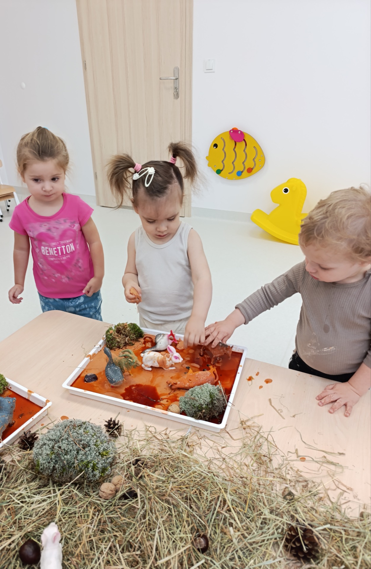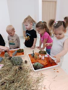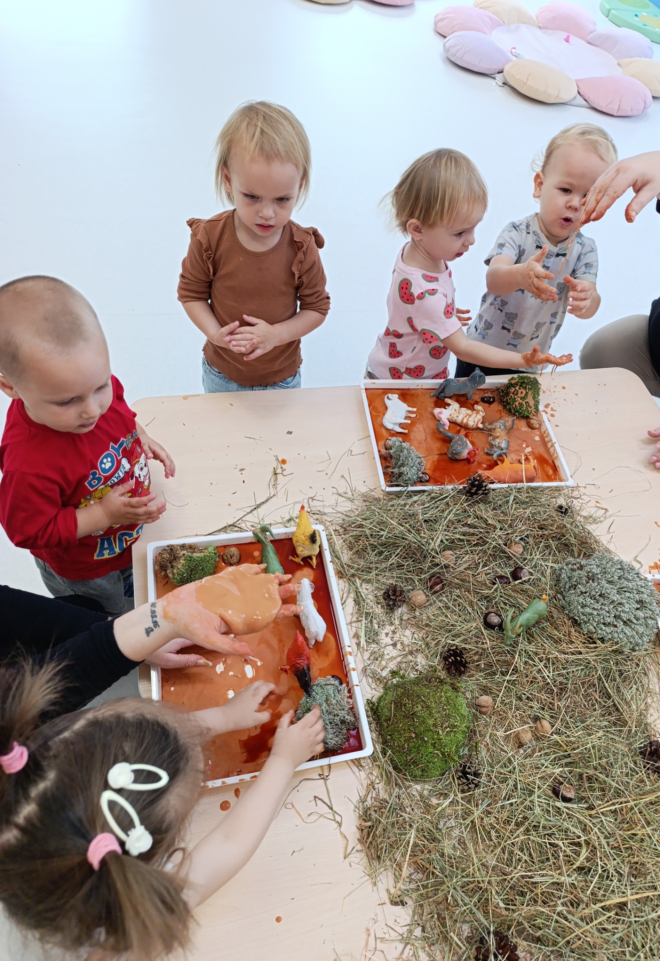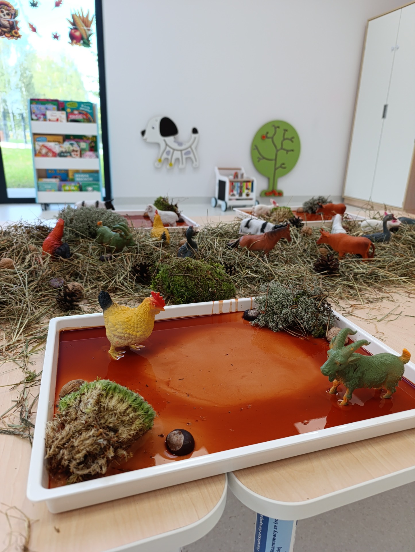Dzieci z ogromną radością zanurzały w niej swoje ulubione figurki zwierząt 🐄🐖🐇🐑 doskonaląc ćwiczenia