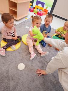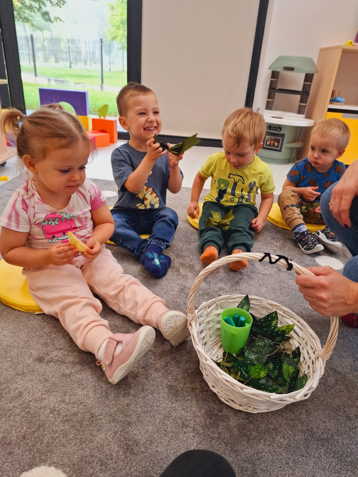 m.in. klocki, listki, piłeczki i jabłka. Dzieci mogły dotykać, oglądać