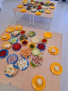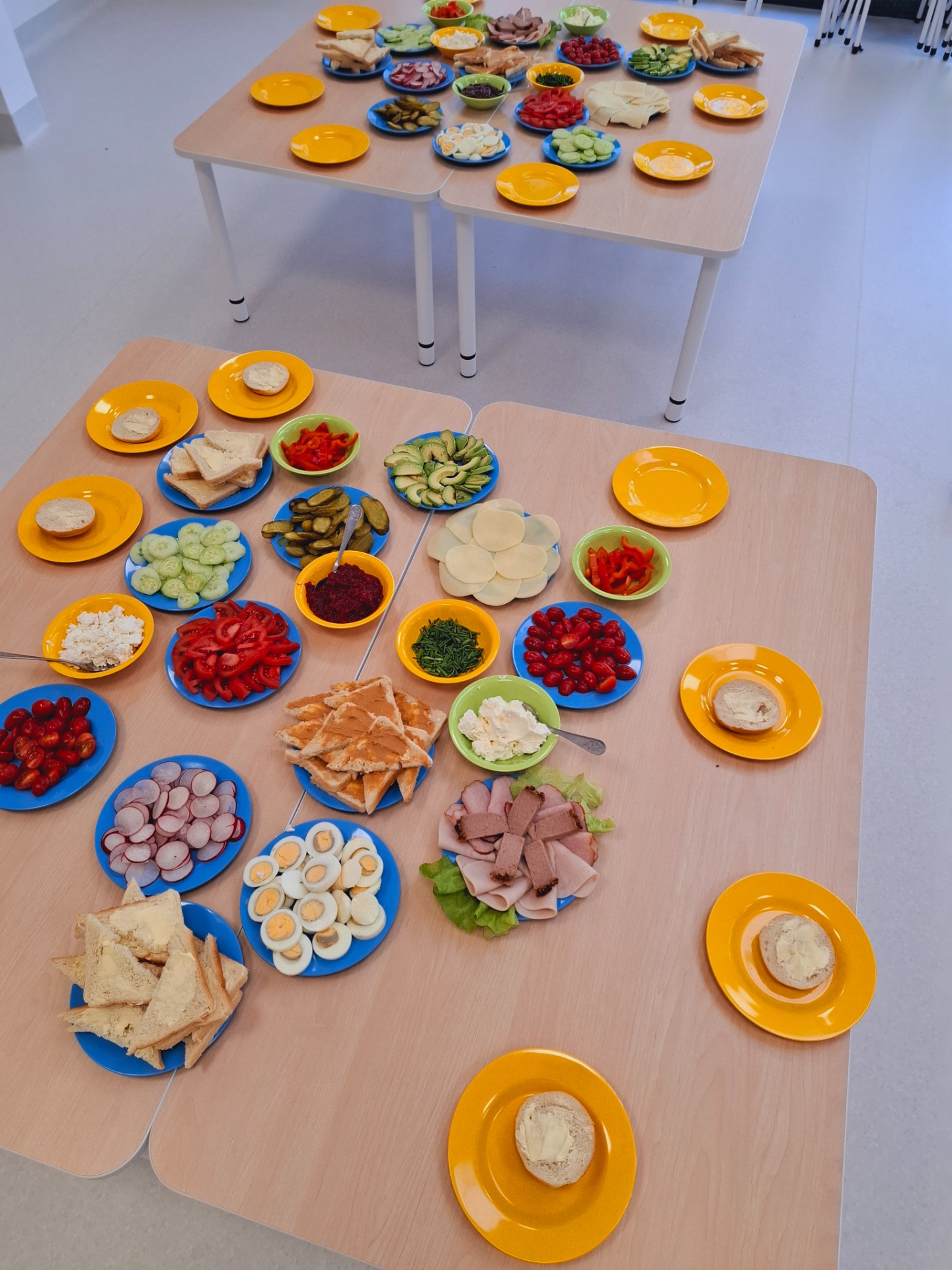 Miały do dyspozycji wiele pysznych składników - warzywa, ser, wędliny, pasztet, dżemy oraz jajka. 🥚🍯🧀