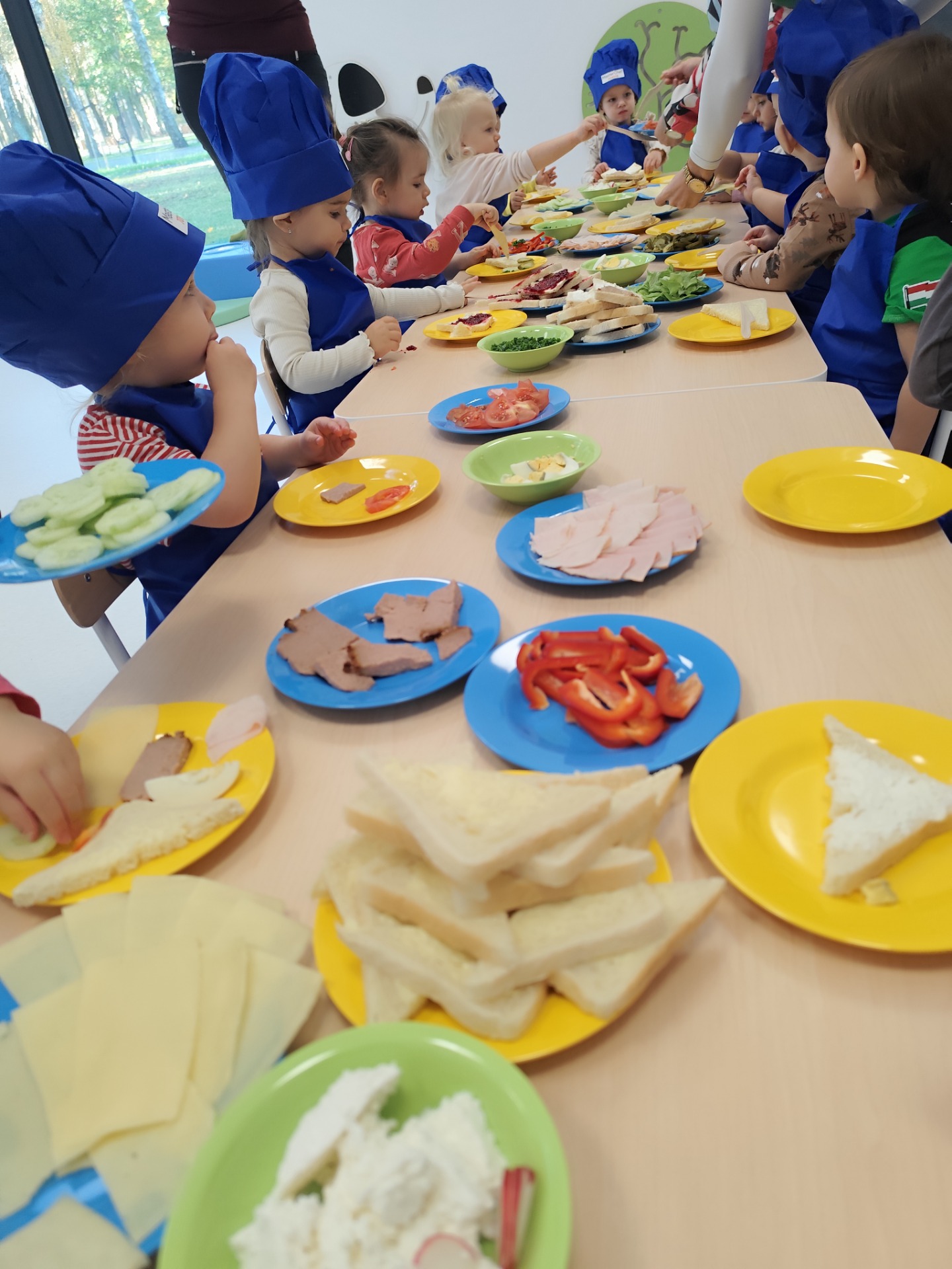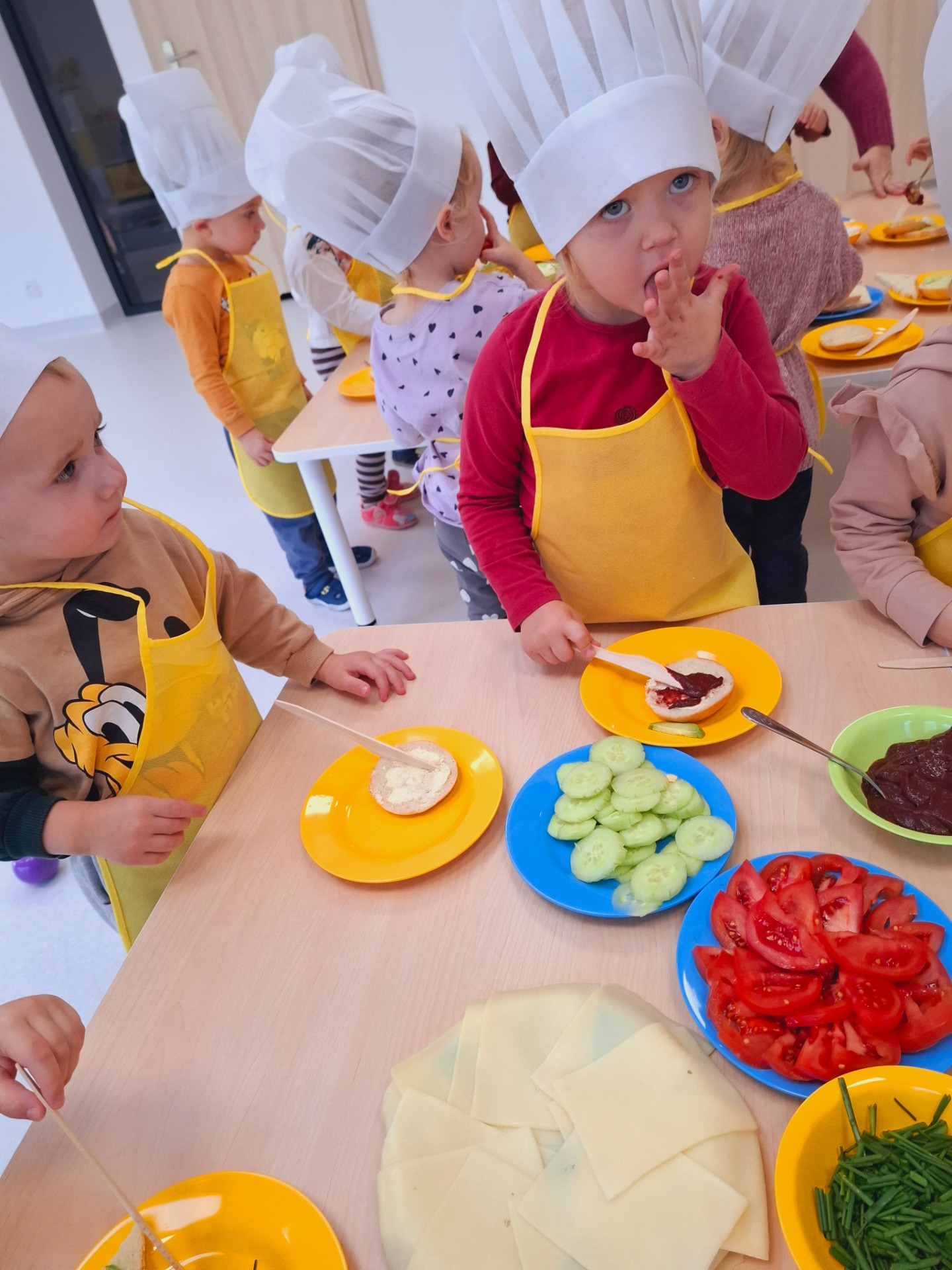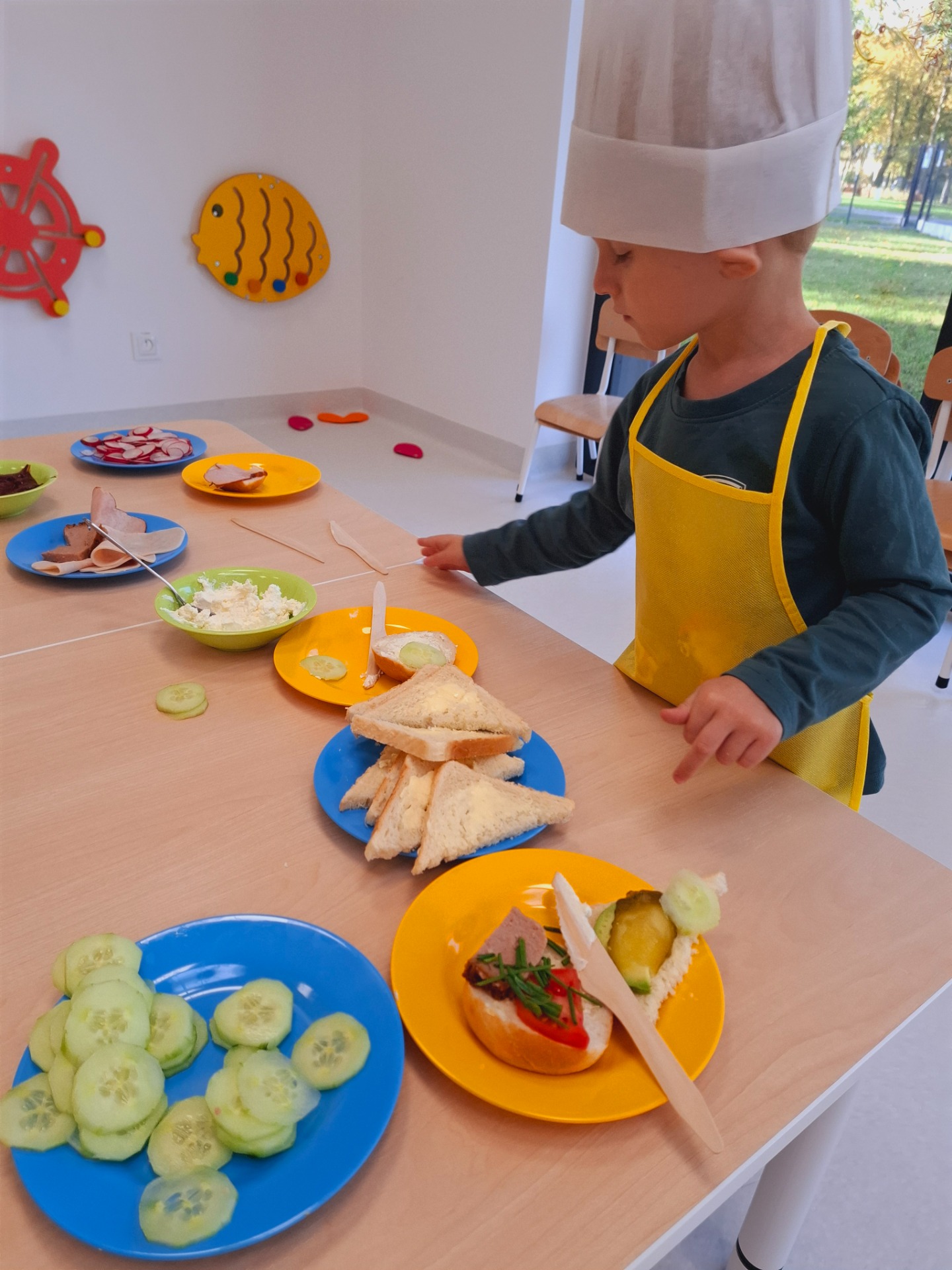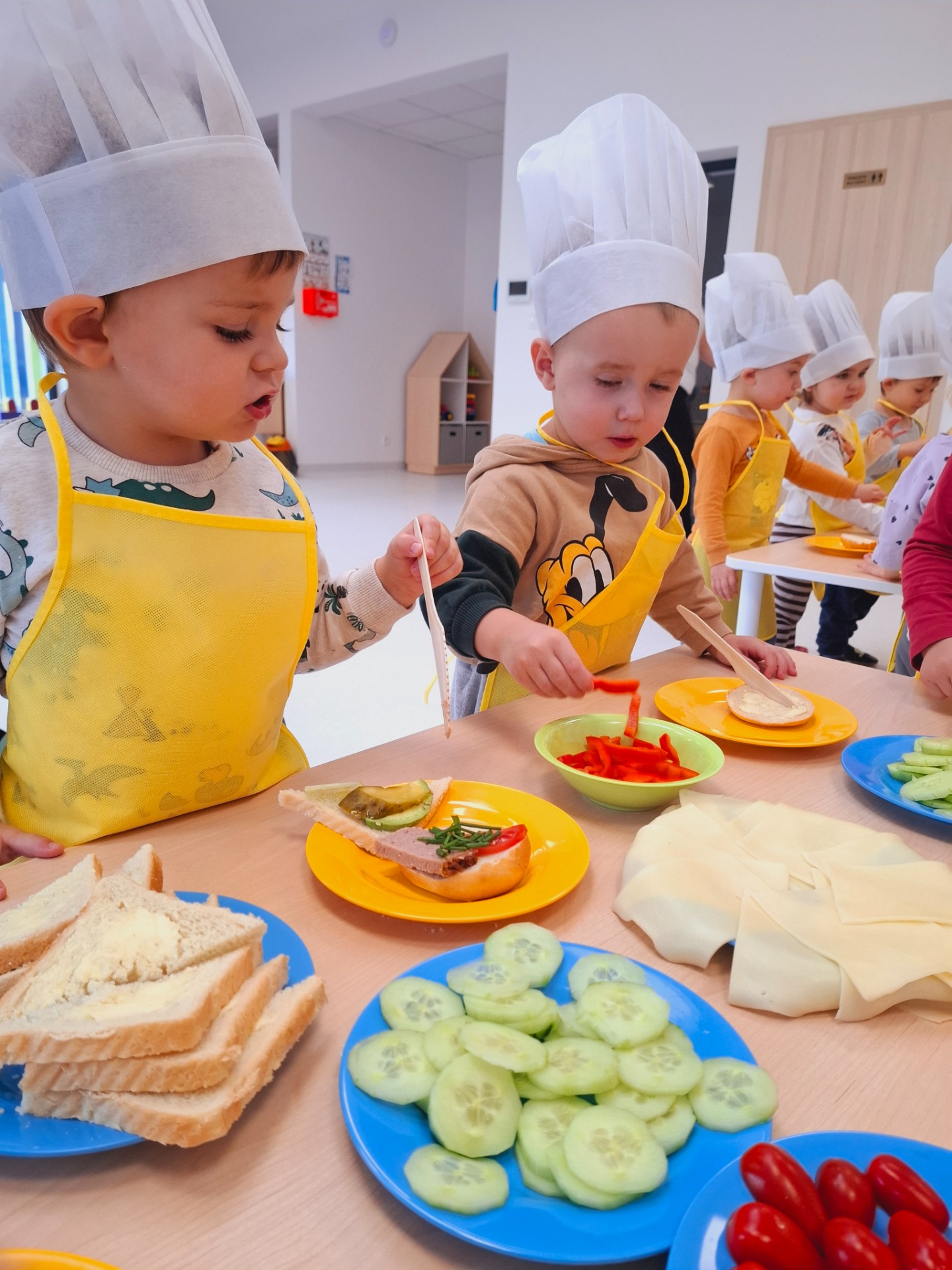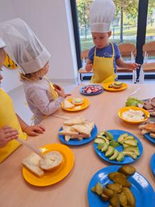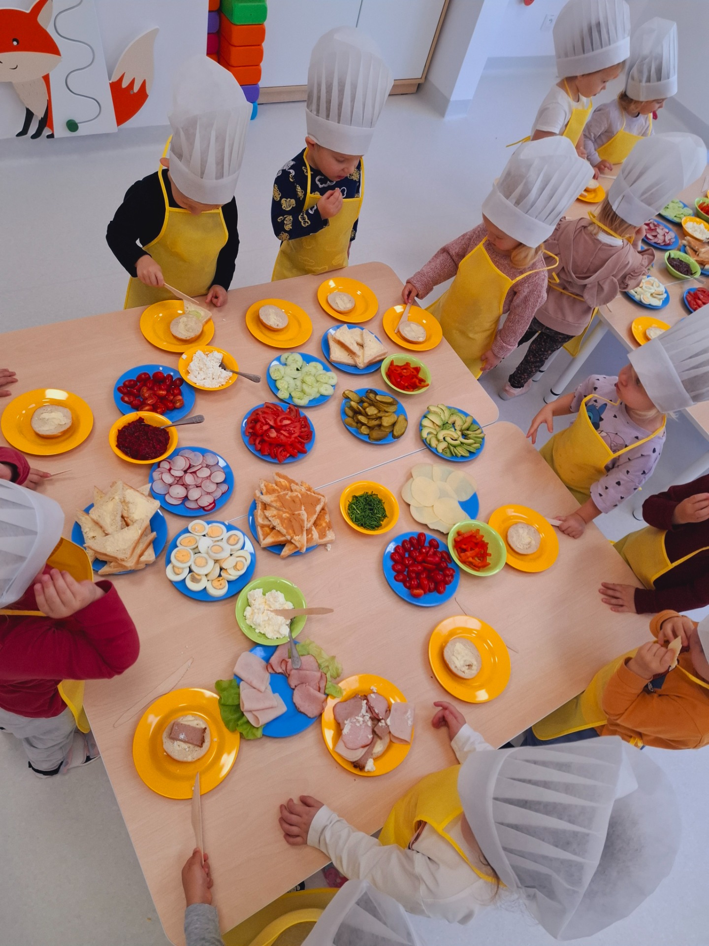 W specjalnych czapkach i fartuszkach kucharskich dzieci samodzielnie przygotowywały kolorowe i zdrowe kanapki. 🥪🥪🥪