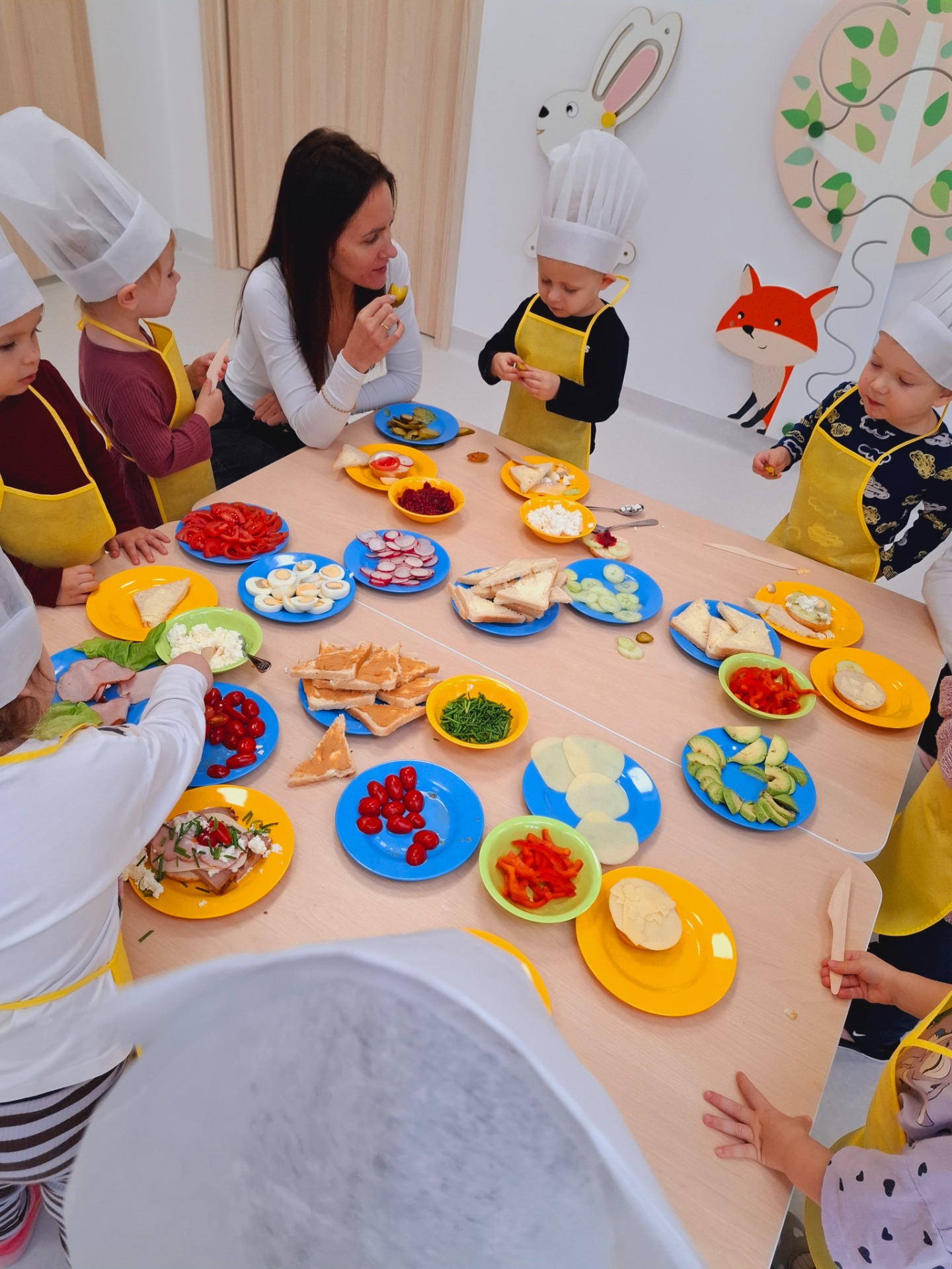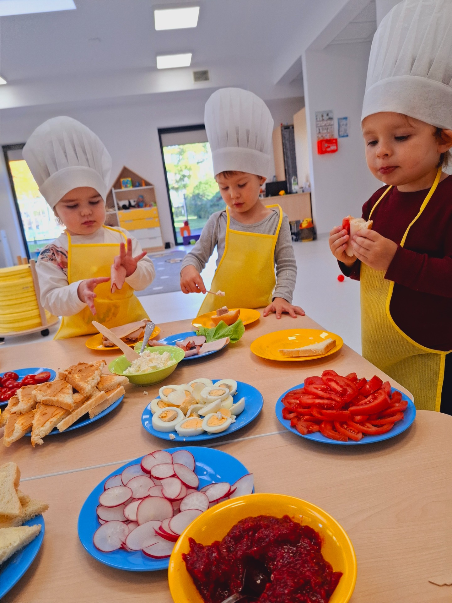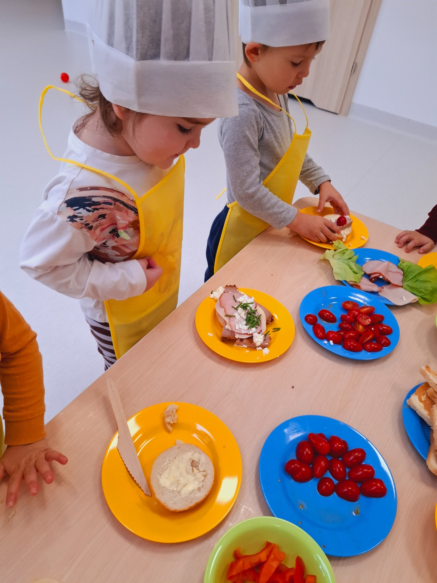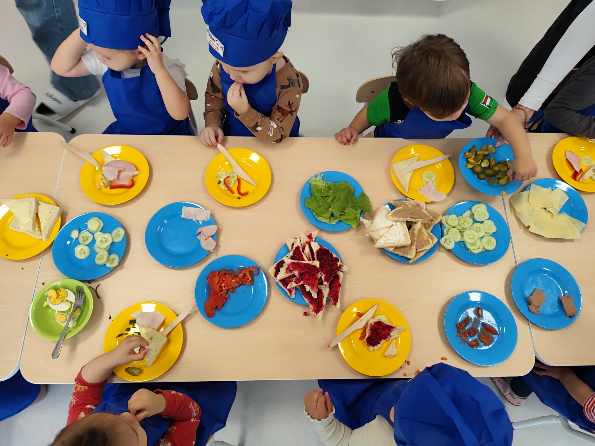 W specjalnych czapkach i fartuszkach kucharskich dzieci samodzielnie przygotowywały kolorowe i zdrowe kanapki. 🥪🥪🥪