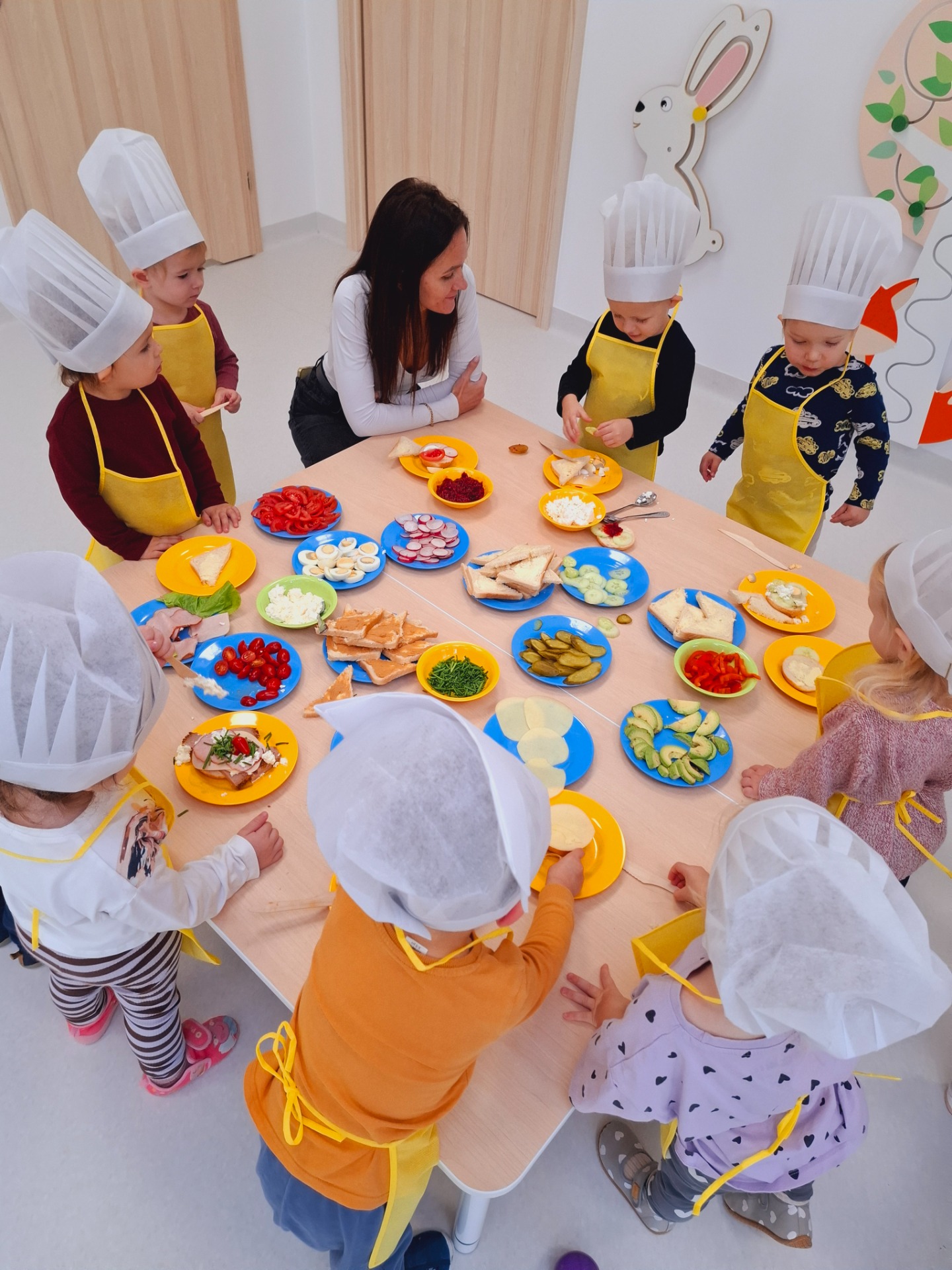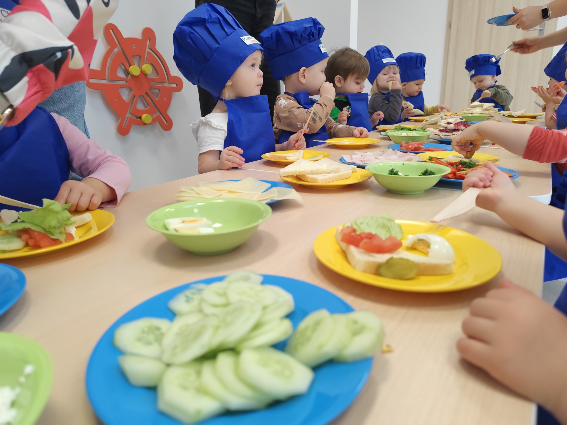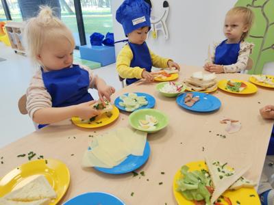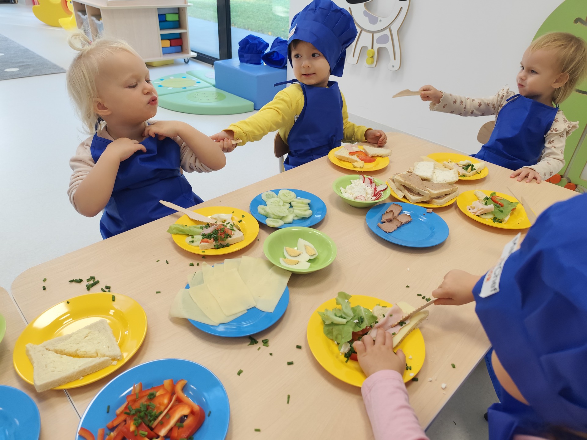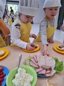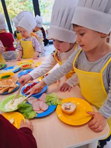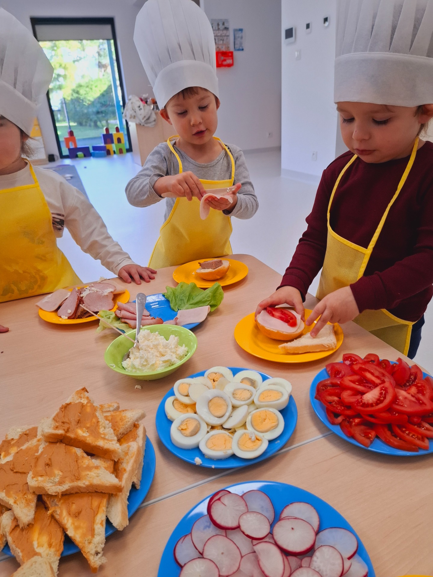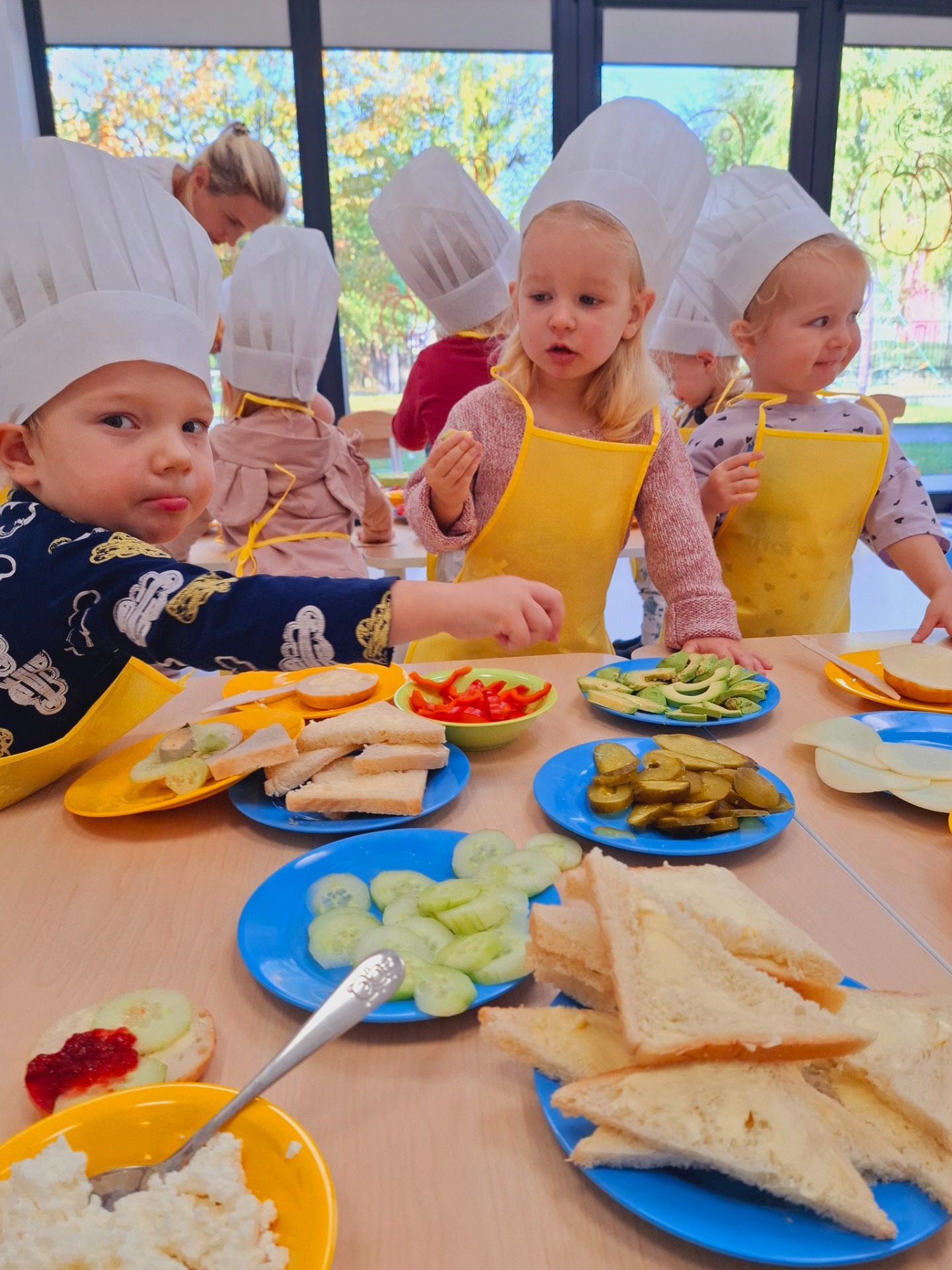 W specjalnych czapkach i fartuszkach kucharskich dzieci samodzielnie przygotowywały kolorowe i zdrowe kanapki. 🥪🥪🥪