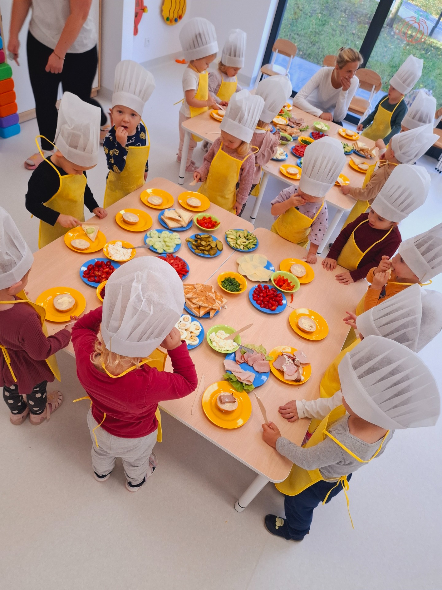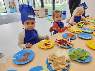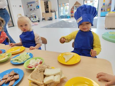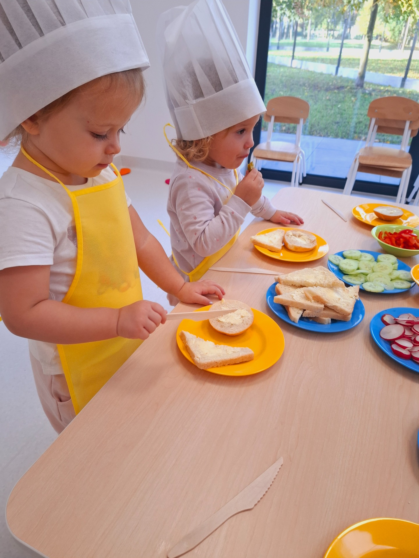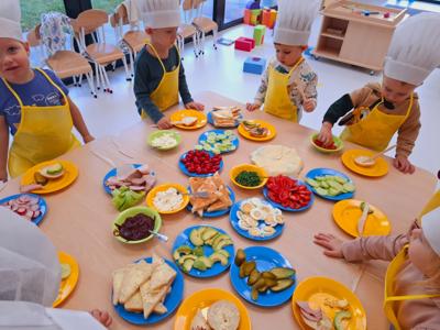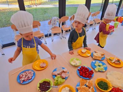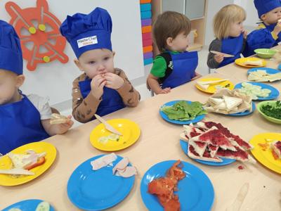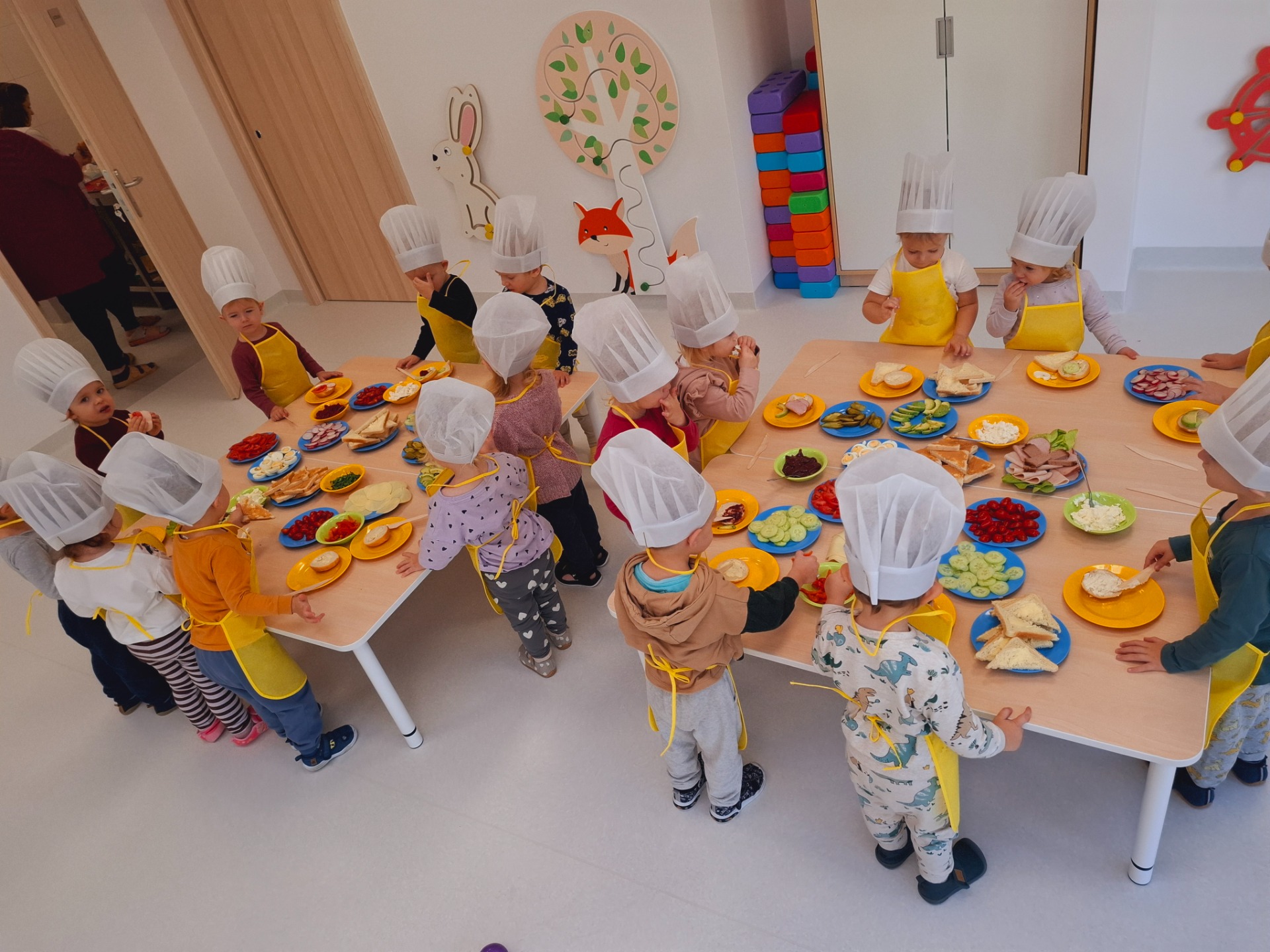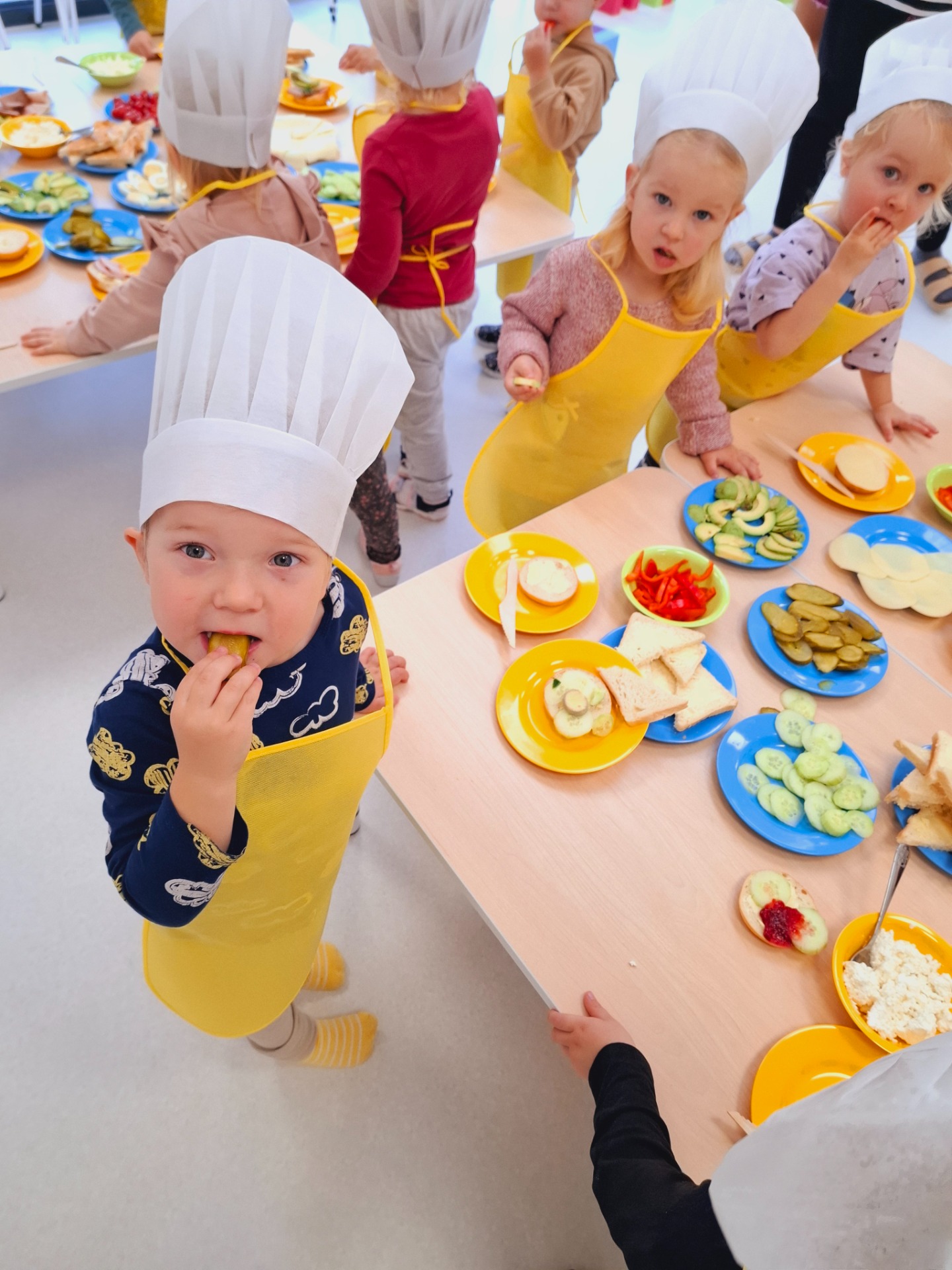 W specjalnych czapkach i fartuszkach kucharskich dzieci samodzielnie przygotowywały kolorowe i zdrowe kanapki. 🥪🥪🥪