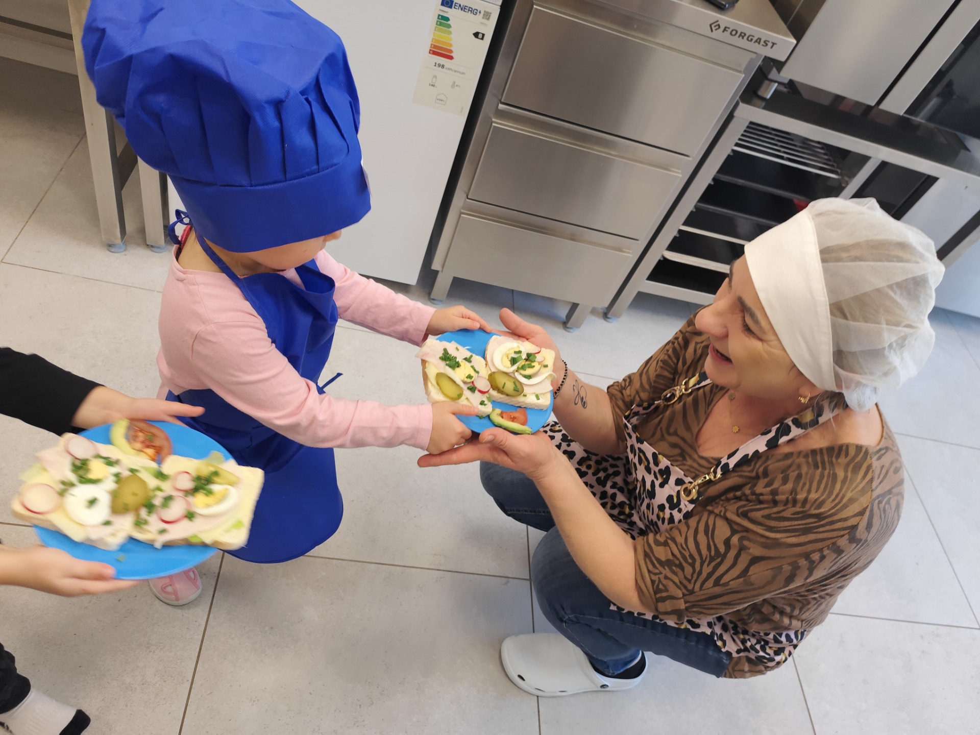 Na zakończenie zajęć dwójka dzieci 👩🍳👨🍳 wręczyła własnoręcznie przygotowane kanapki