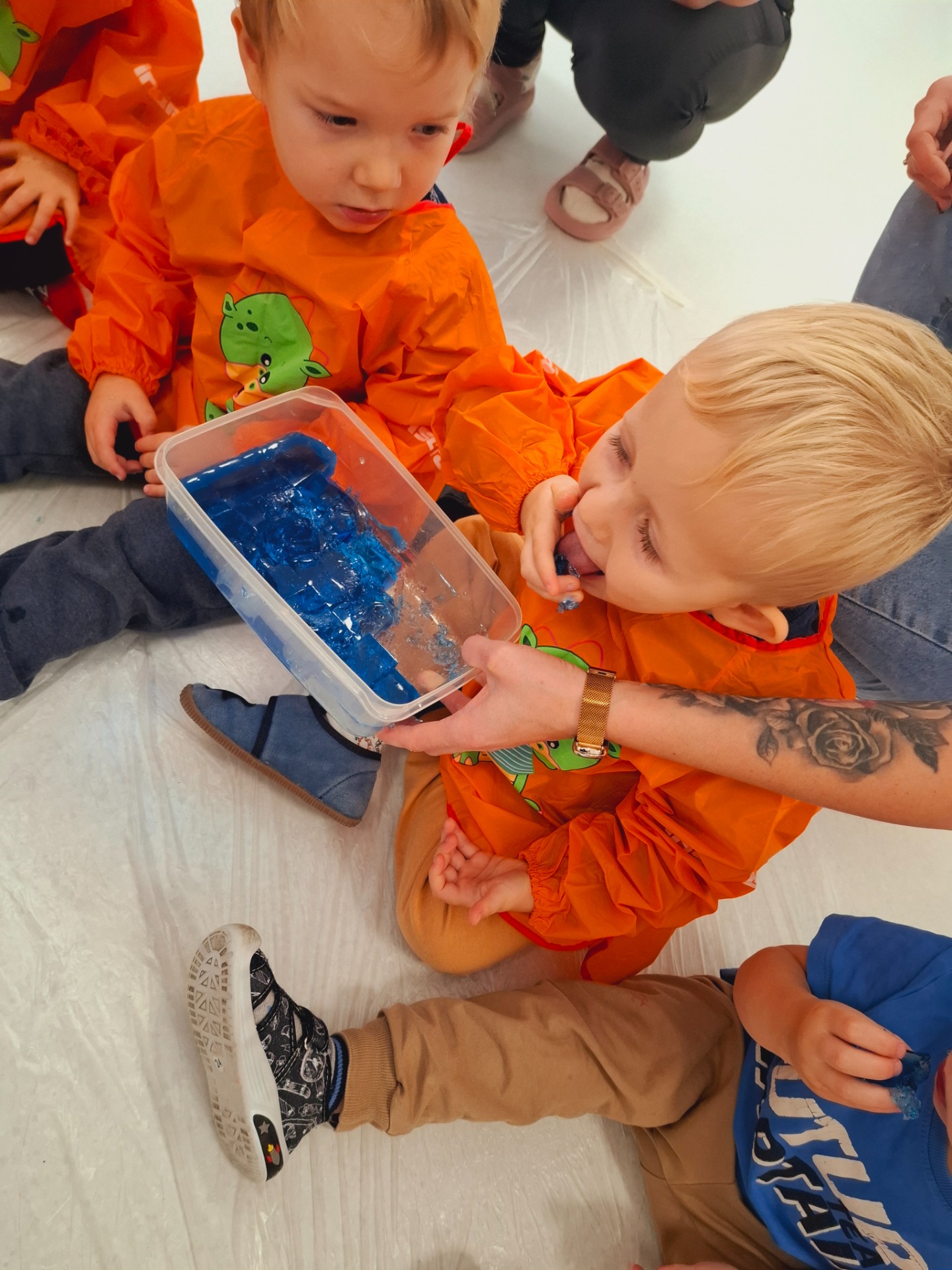 Następnie dzieci miały okazję spróbować niebieskiej galaretki o smaku borówkowym 🫐🫐