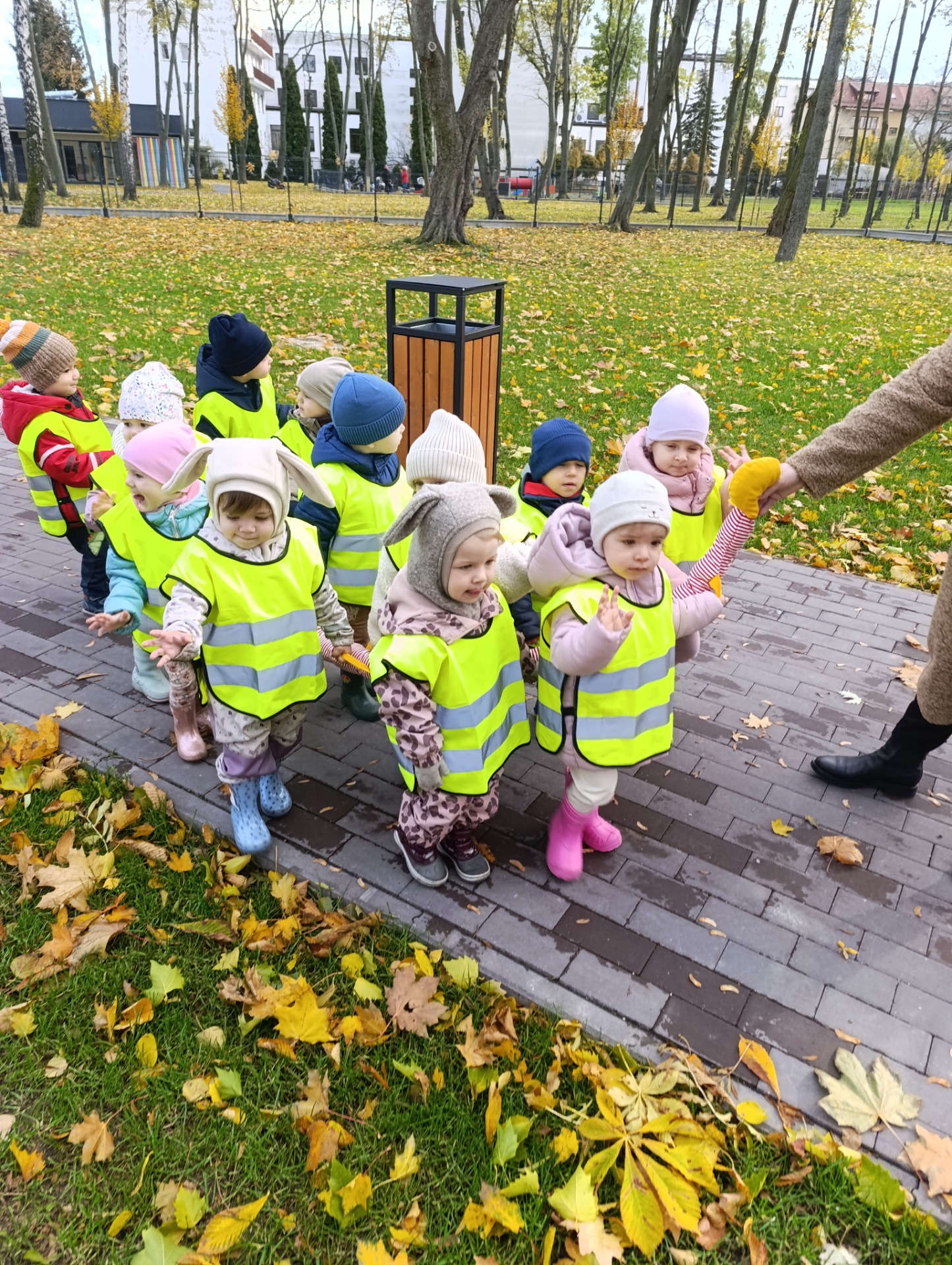 Ubrani w ciepłe kurtki, czapki, szaliki i odblaskowe kamizelki ruszyliśmy na wyprawę.