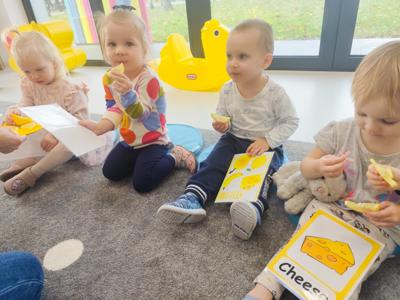 Dzieci aktywnie uczestniczyły w zajęciach i chętnie powtarzały nowe słowo po angielsku.