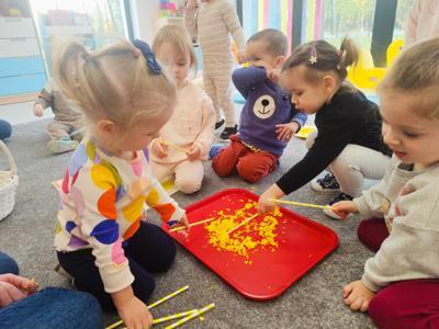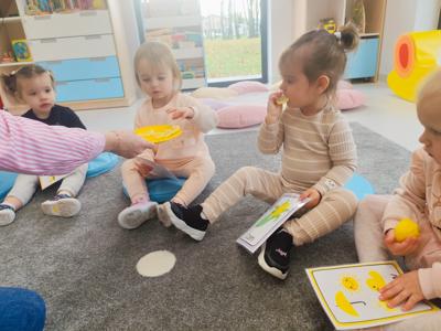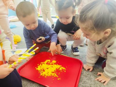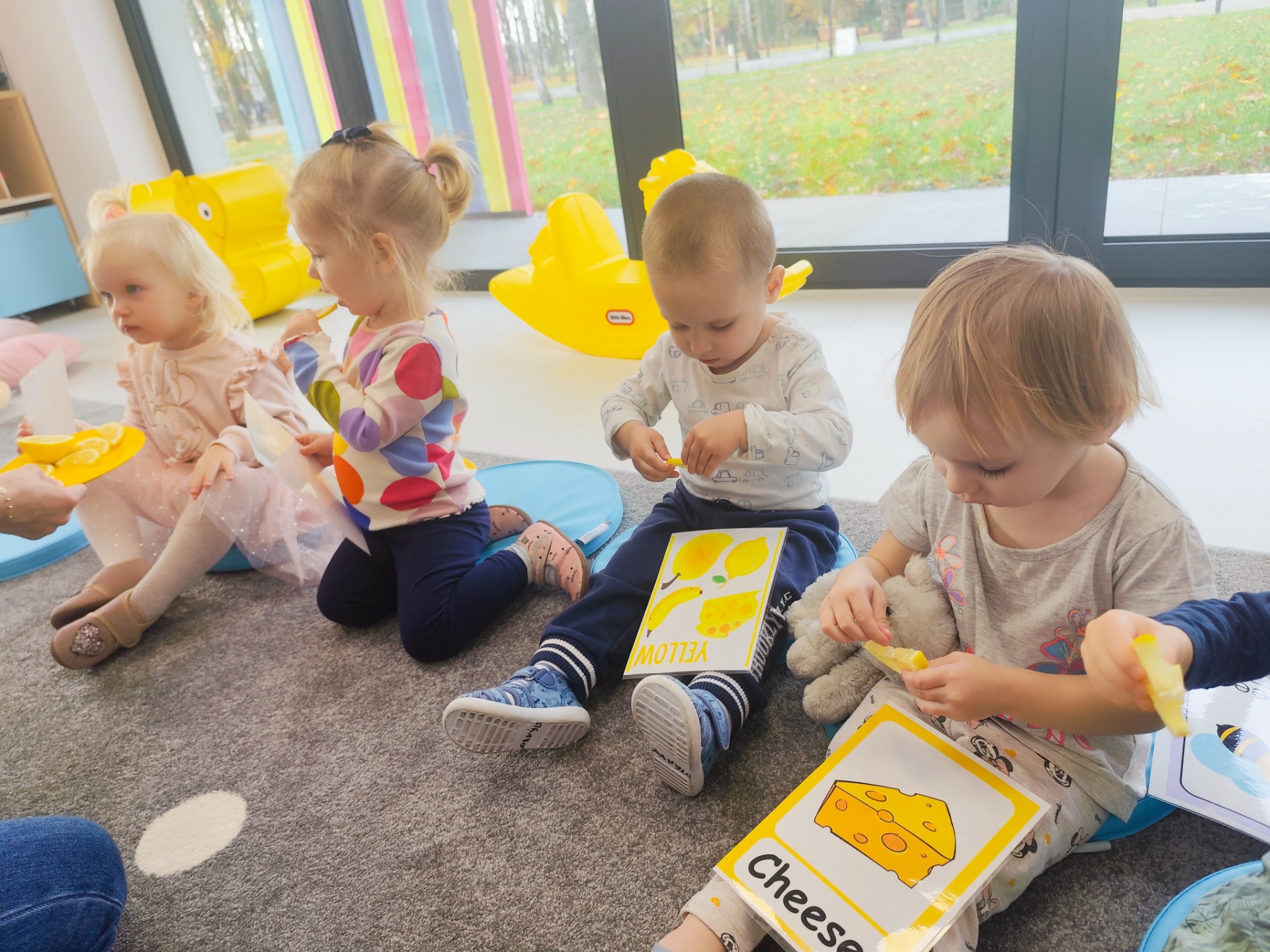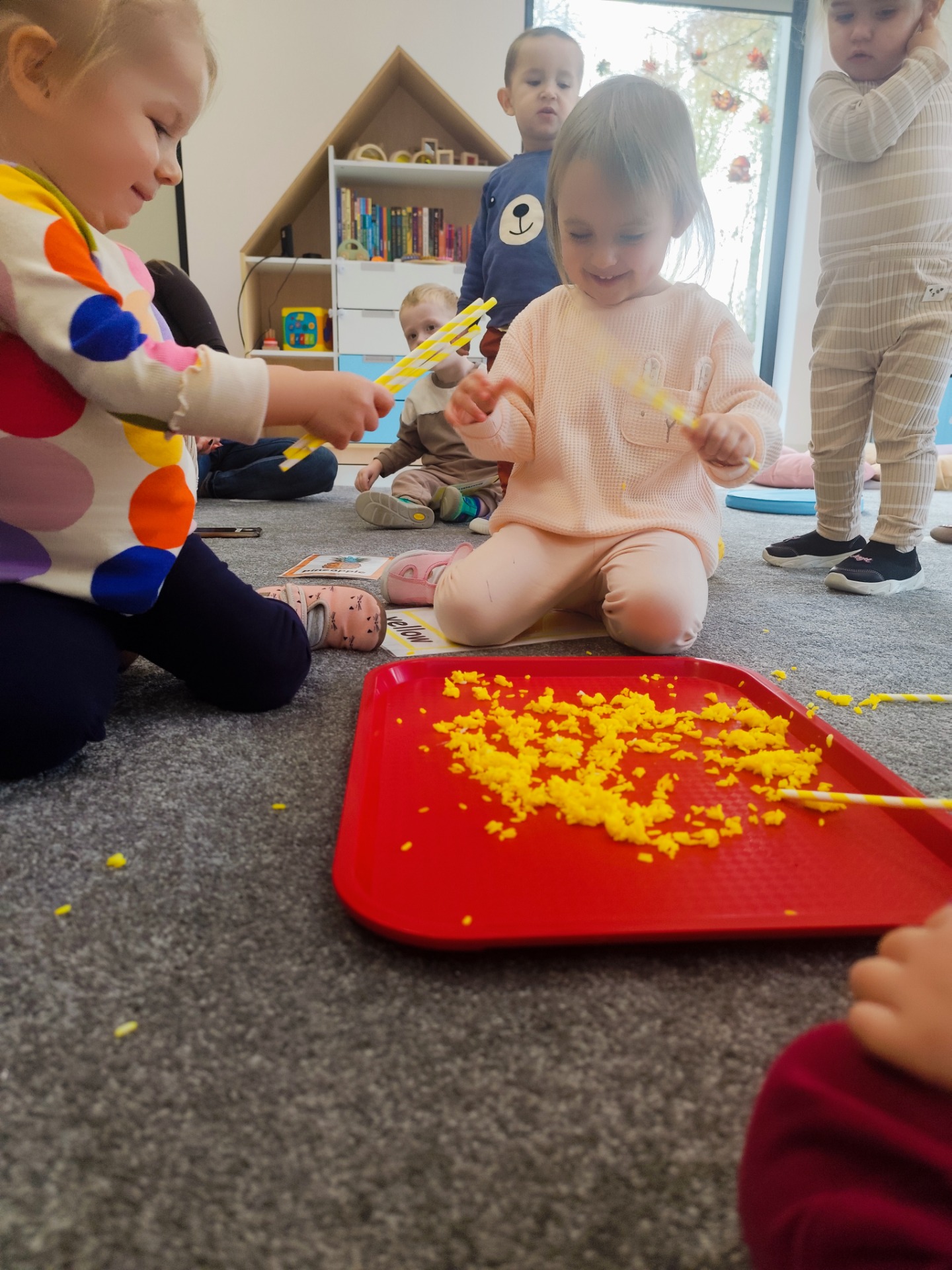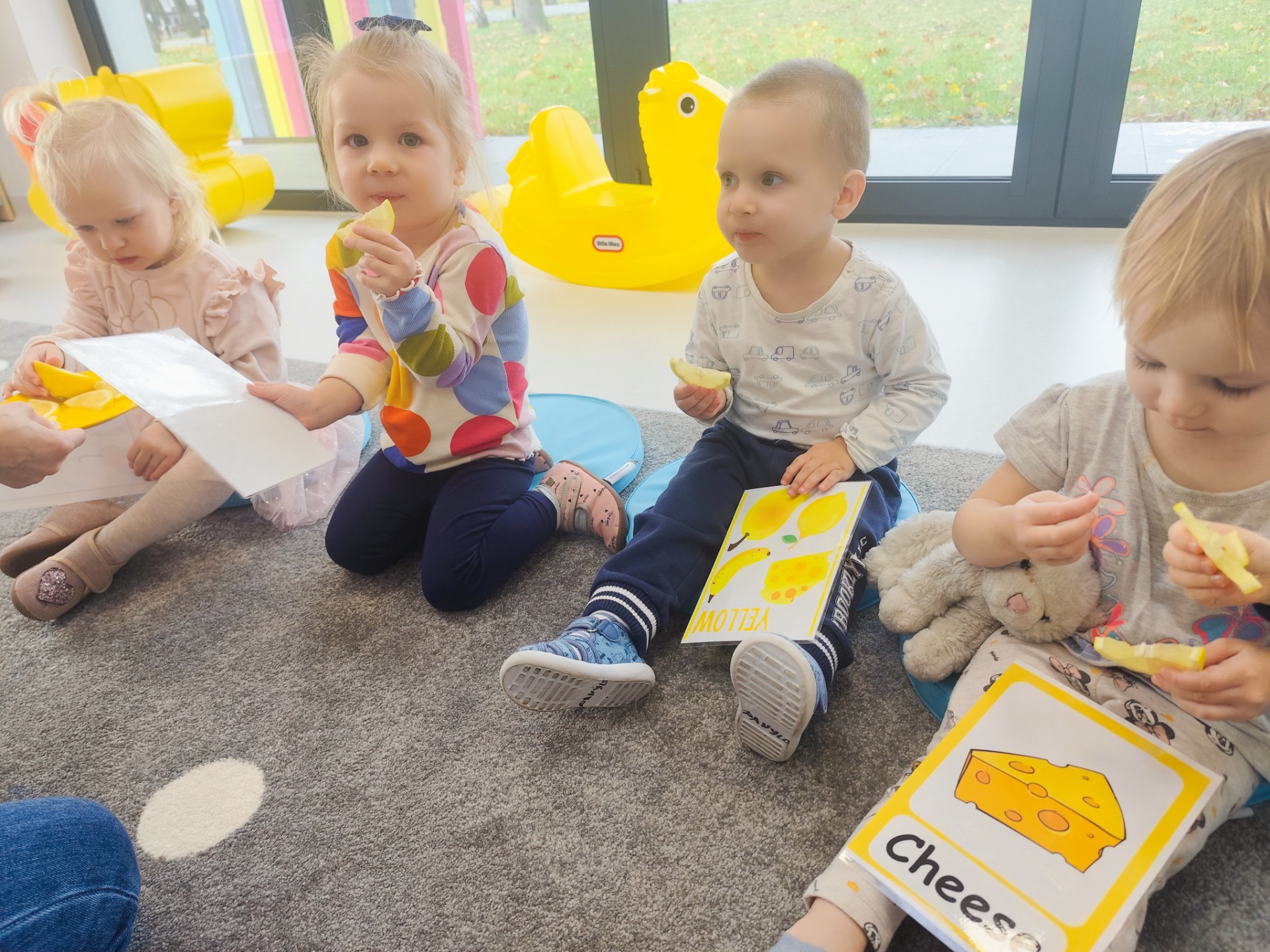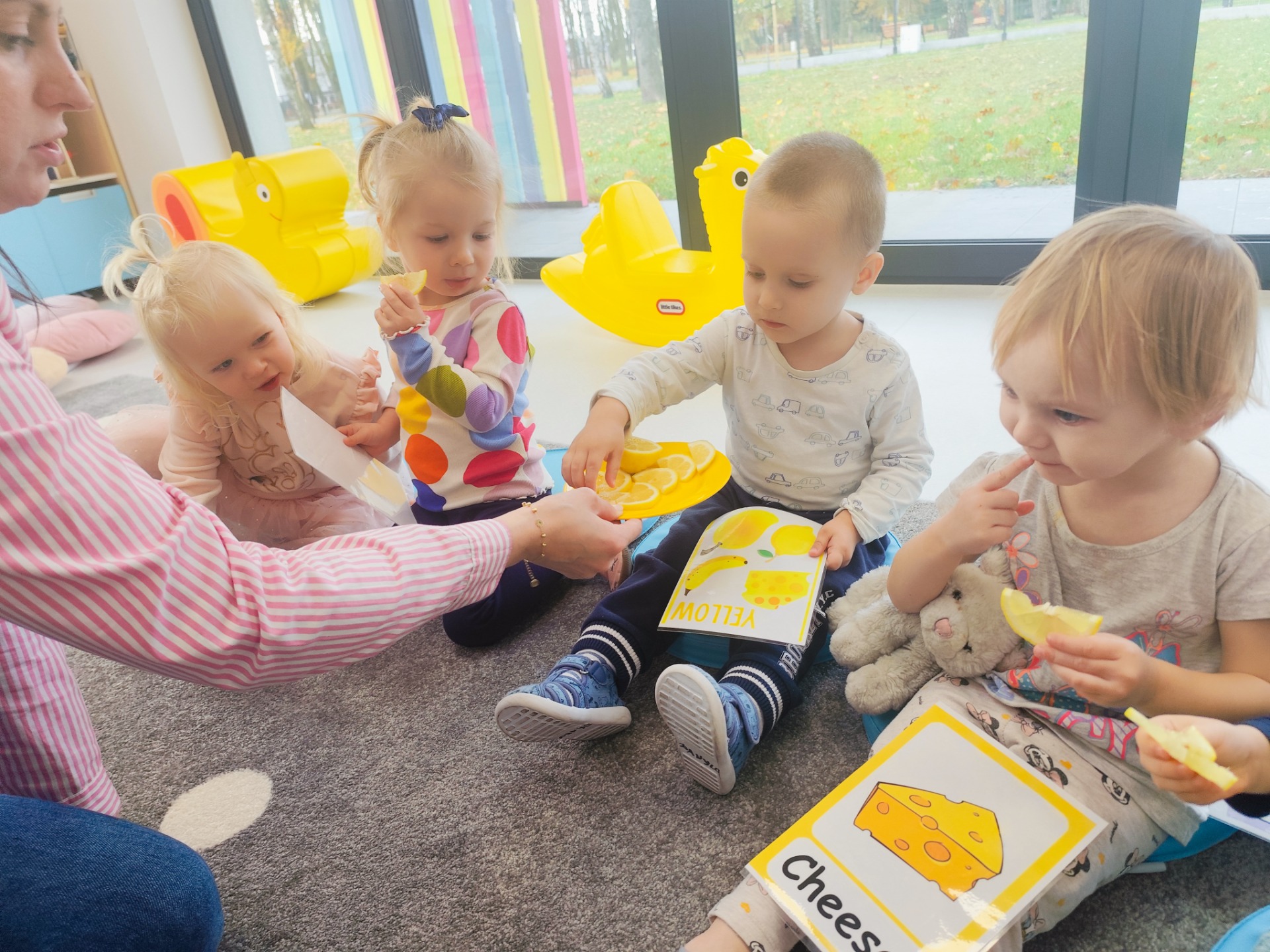 Podczas dzisiejszych zajęć dzieci poznawały kolor YELLOW🍋💛🌼 (żółty).