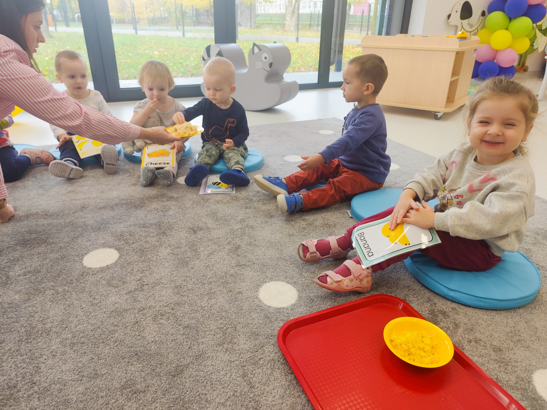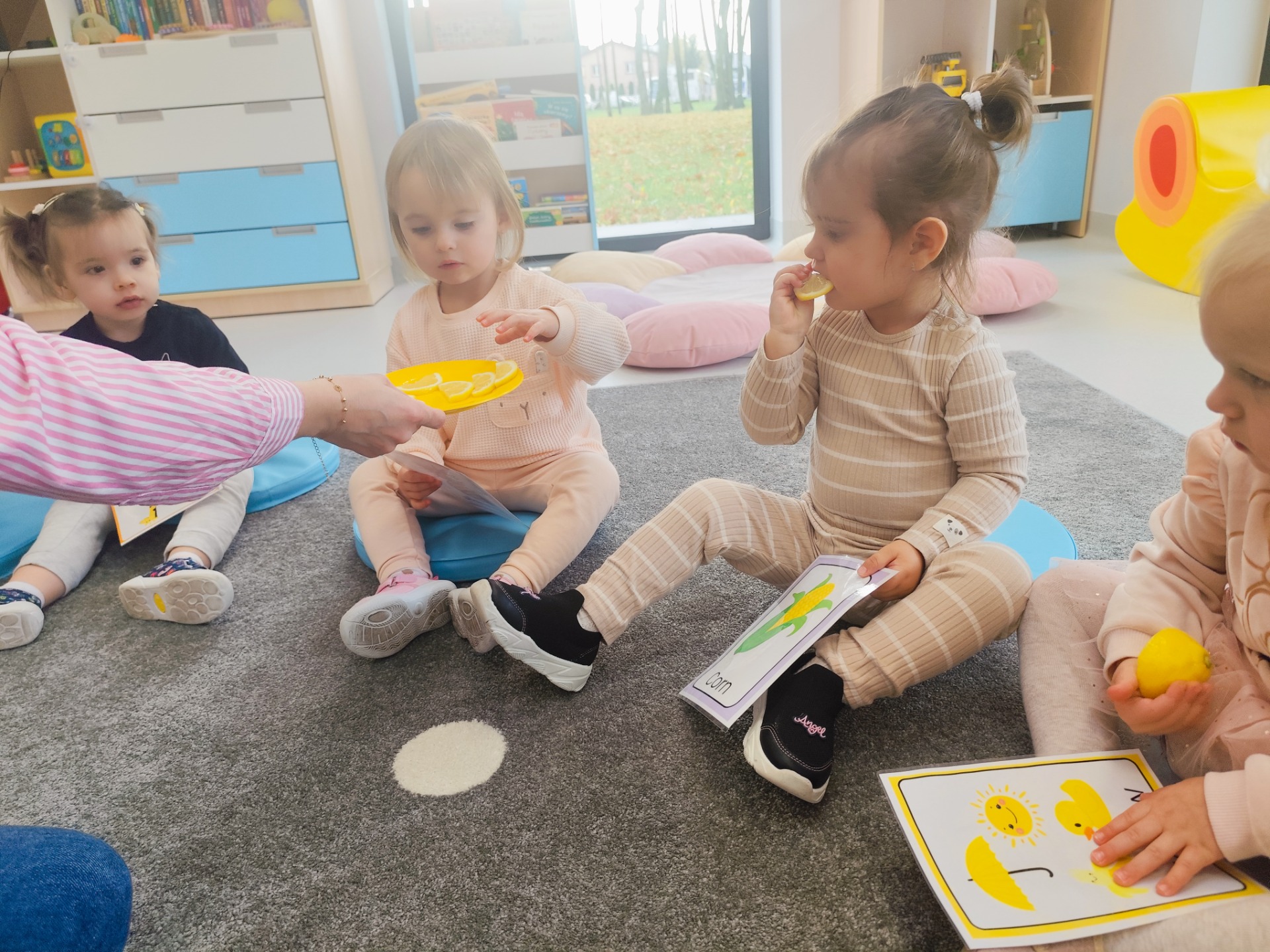 Następnie dzieci mogły spróbować żółtych produktów – banana, ryżu i cytryny.