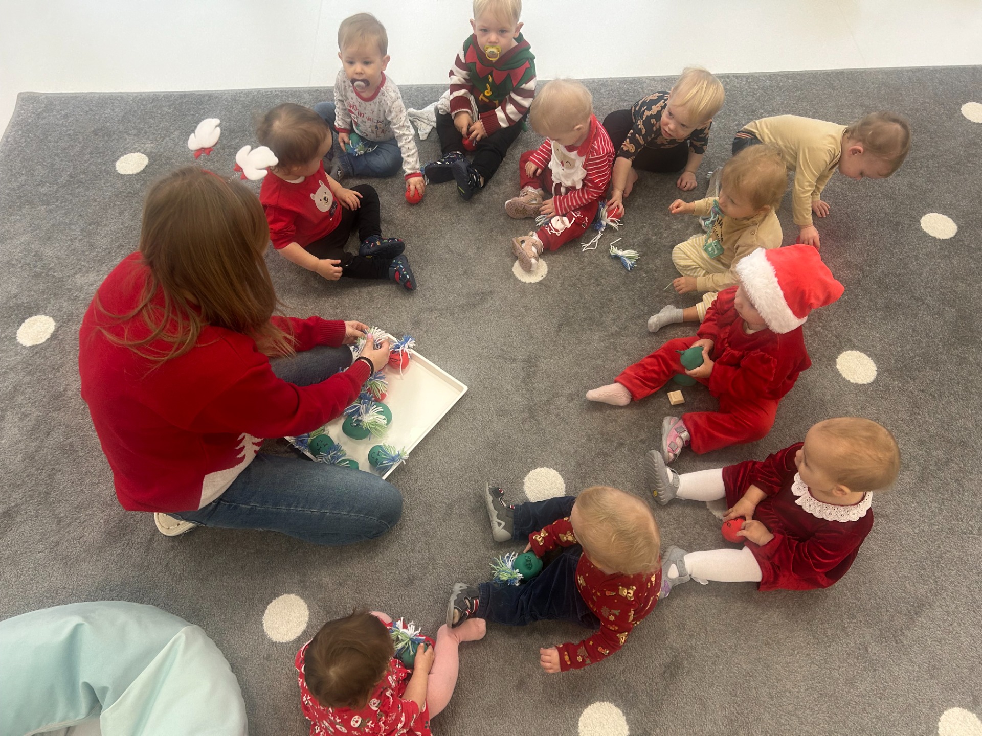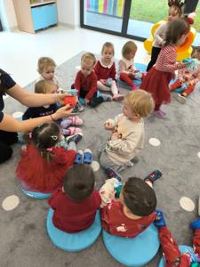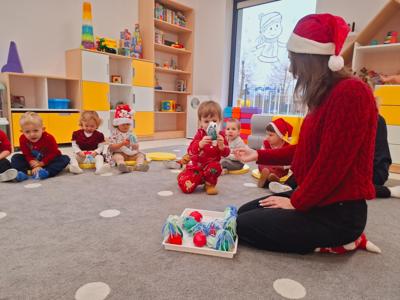 W naszym żłobku ciocie z każdej grupy – Niebieskich Jagódek, Żółtych Cytrynek, Zielonych Jabłuszek i Różowych Malinek – przygotowały dla dzieci wyjątkowe mikołajkowe prezenty.