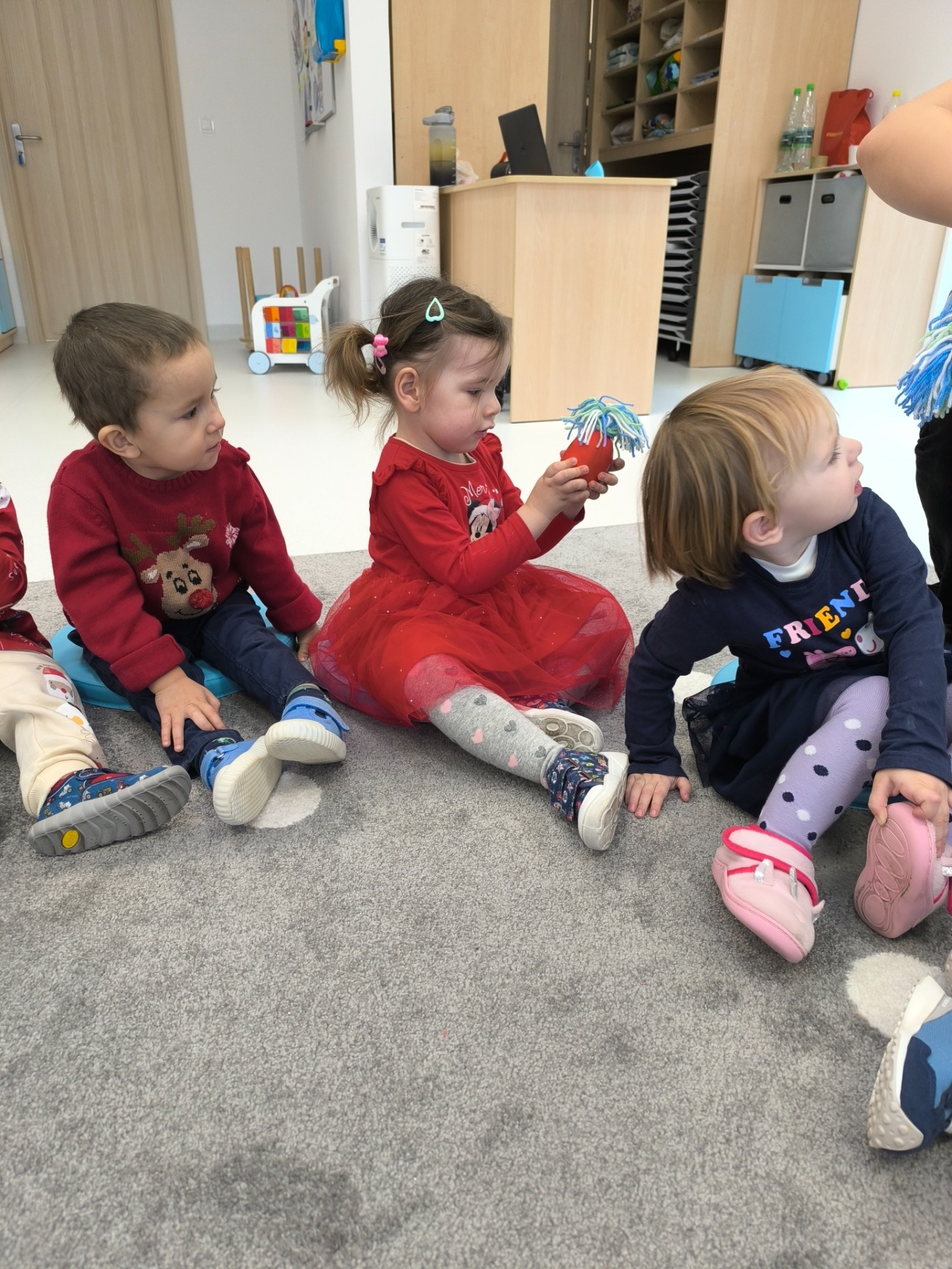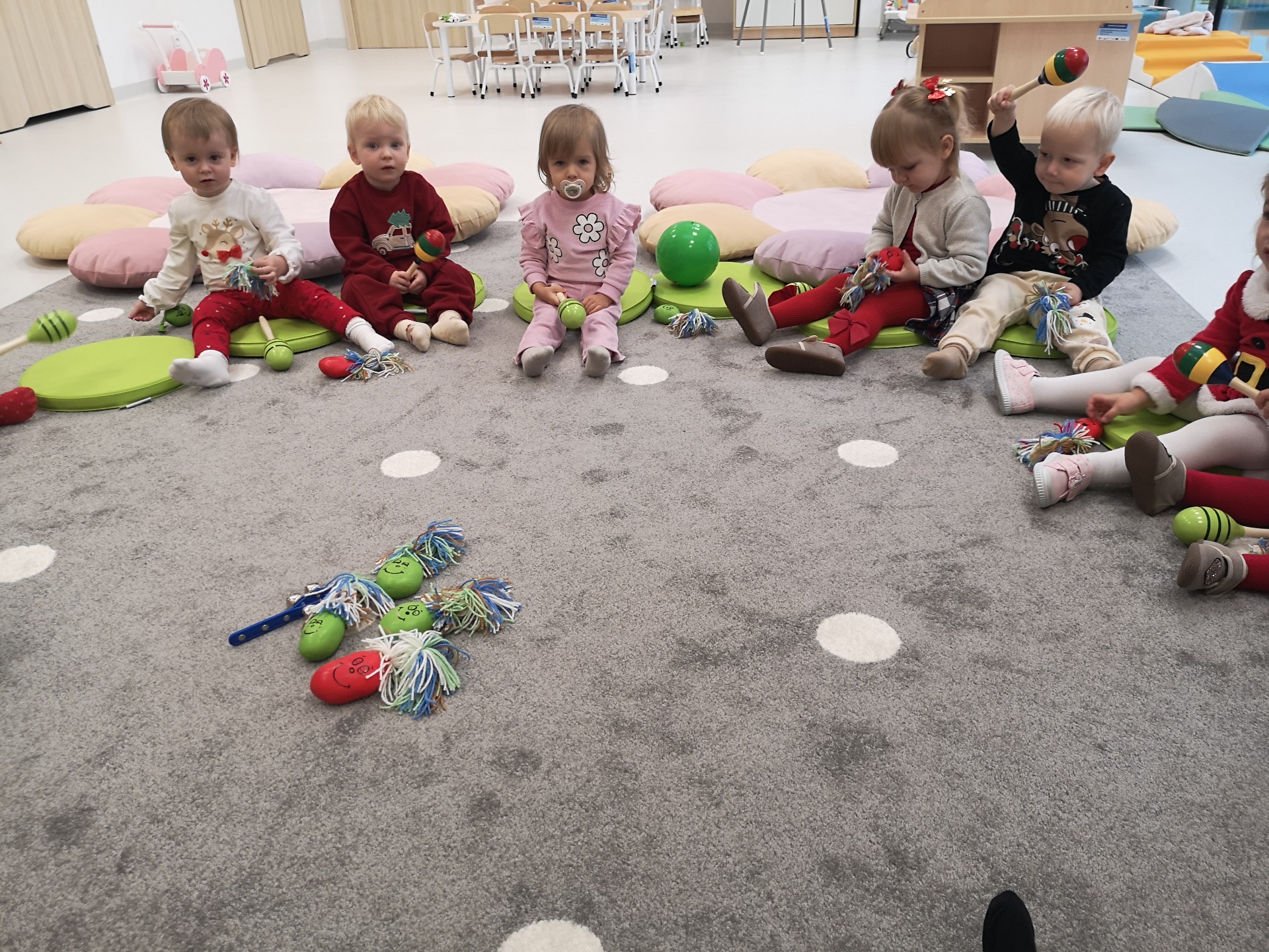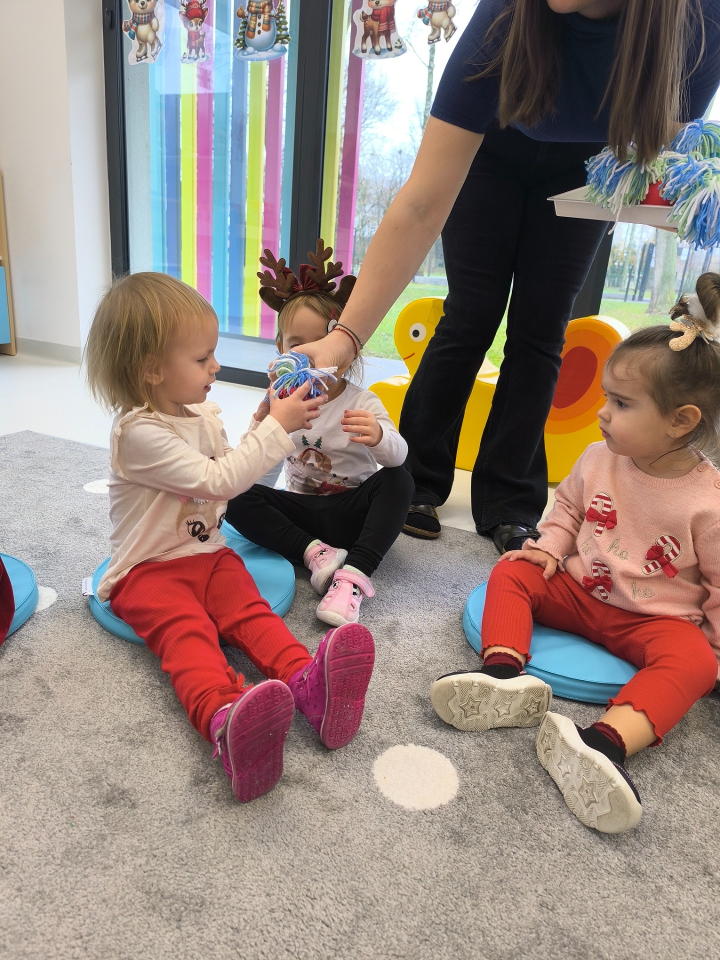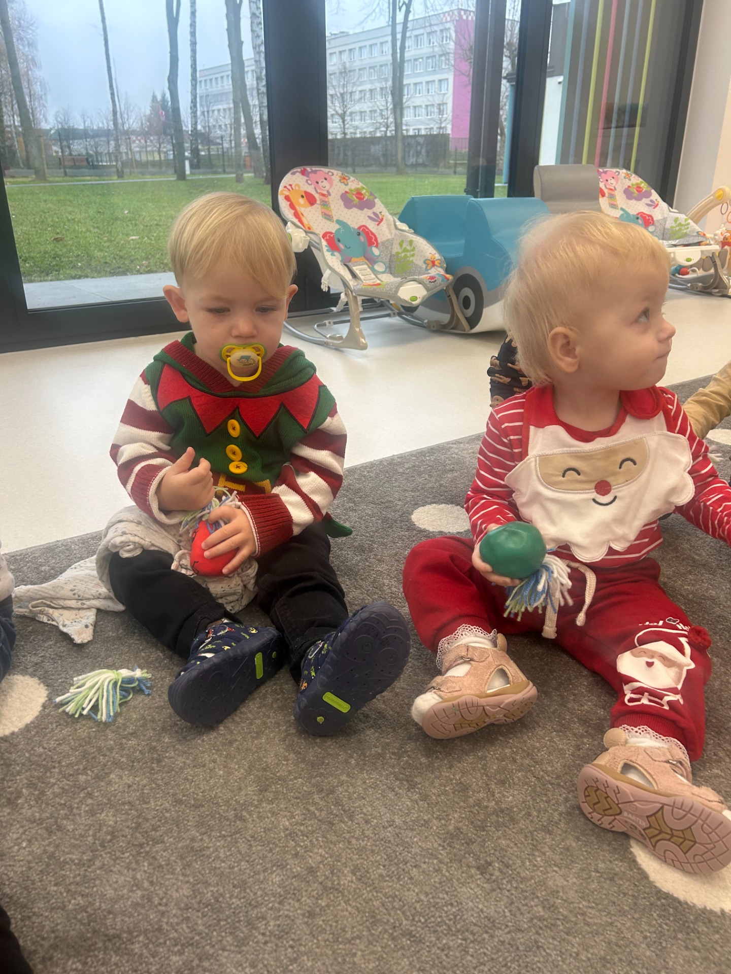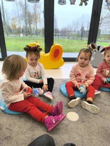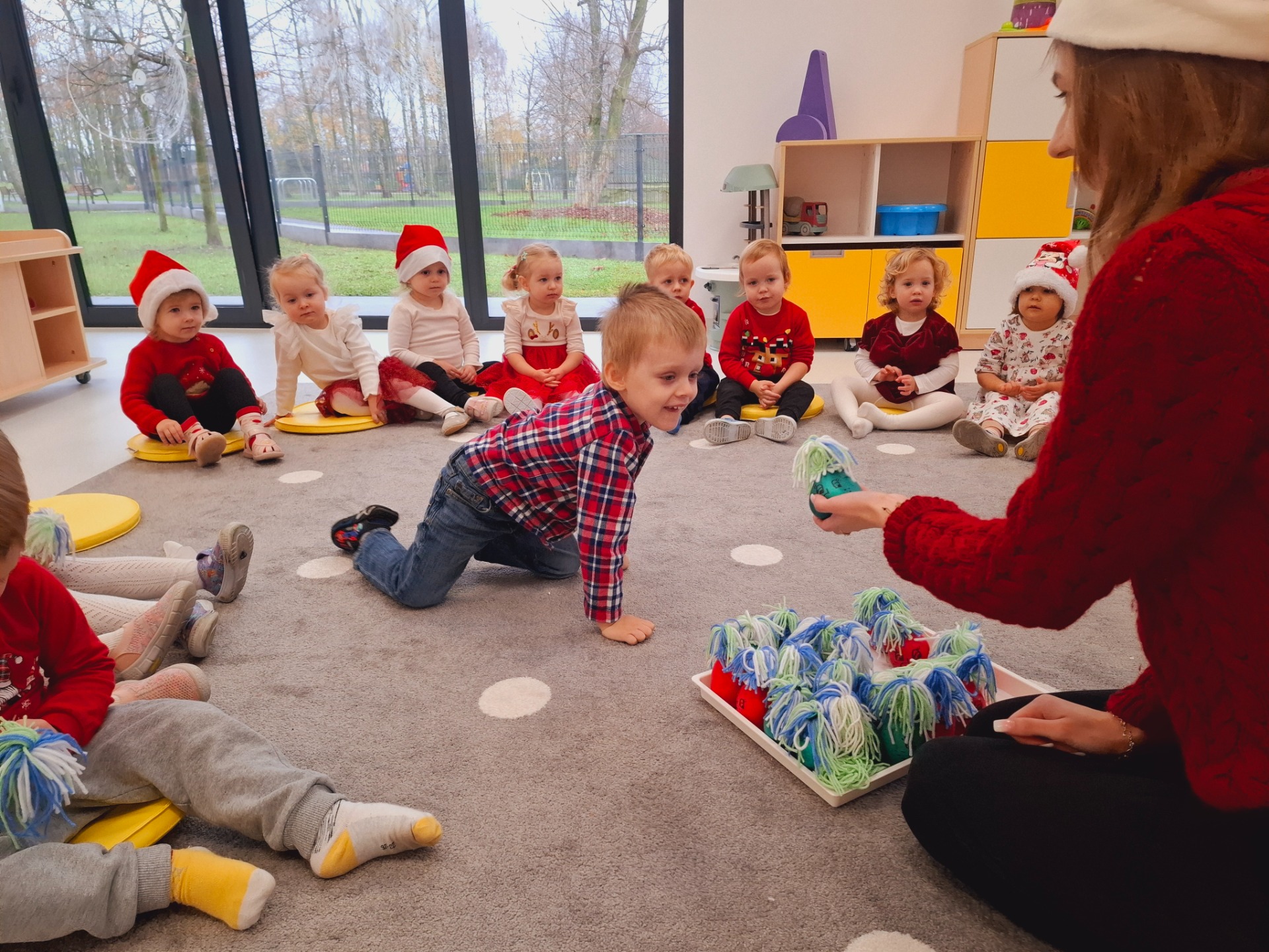 Choć dzieci nie brały udziału w tworzeniu, z wielkim zainteresowaniem obserwowały pracę cioć, dotykały włóczki, oglądały balony i czekały na swoje niespodzianki.