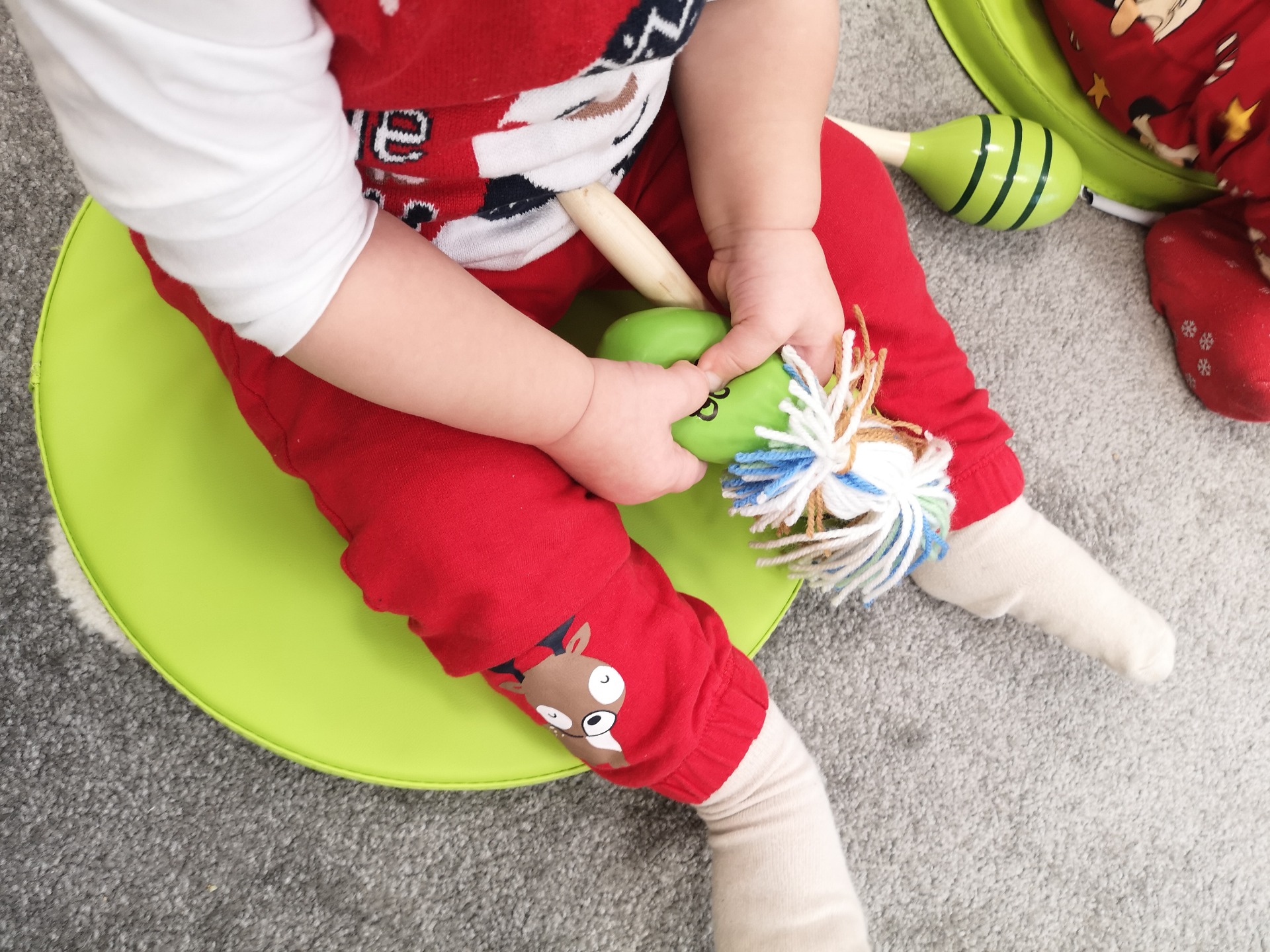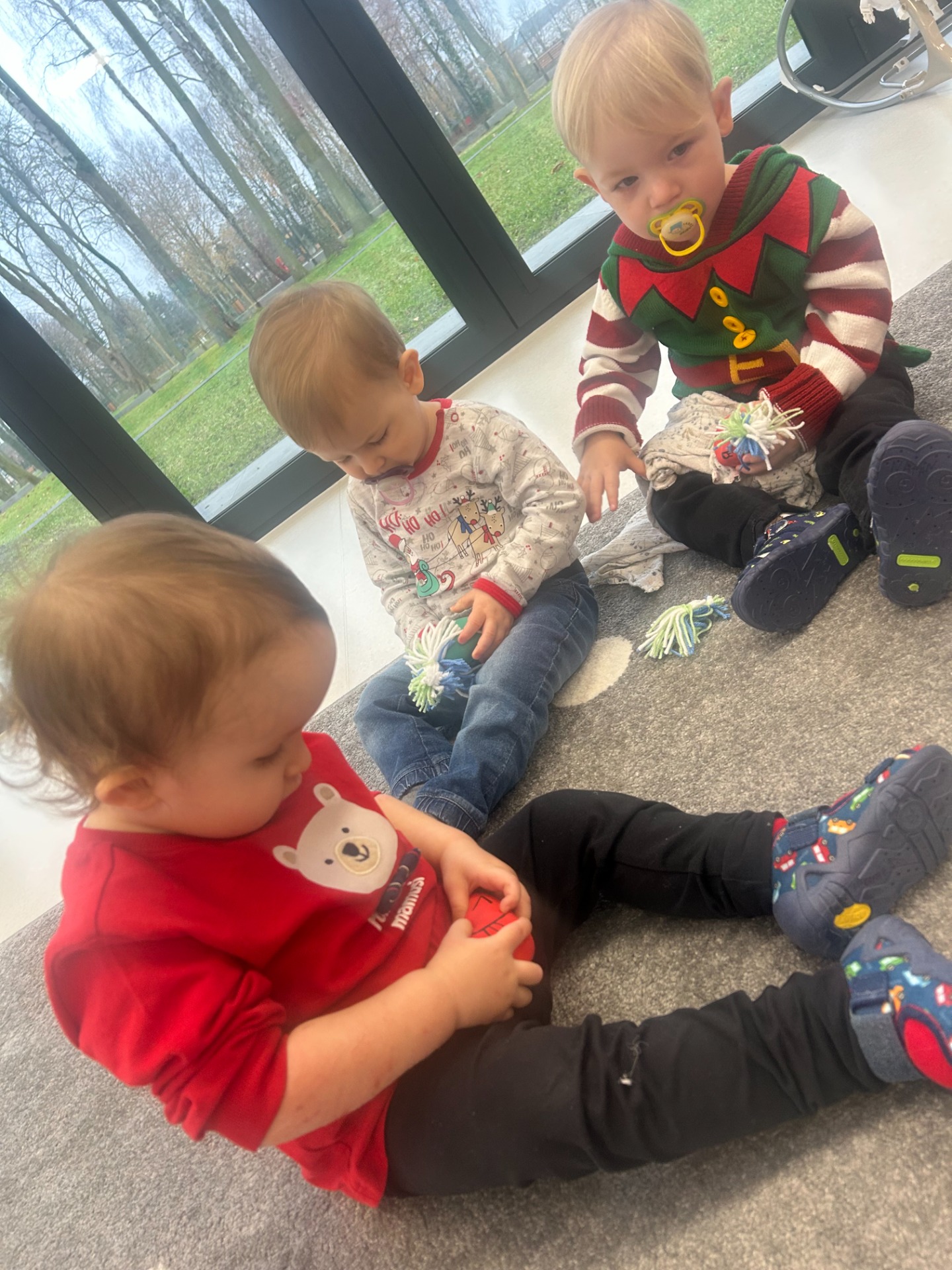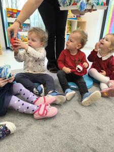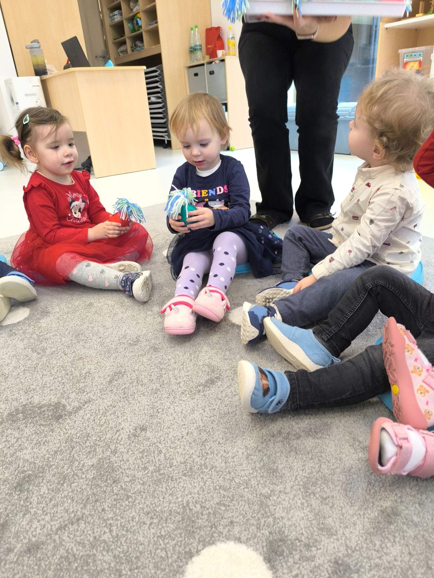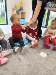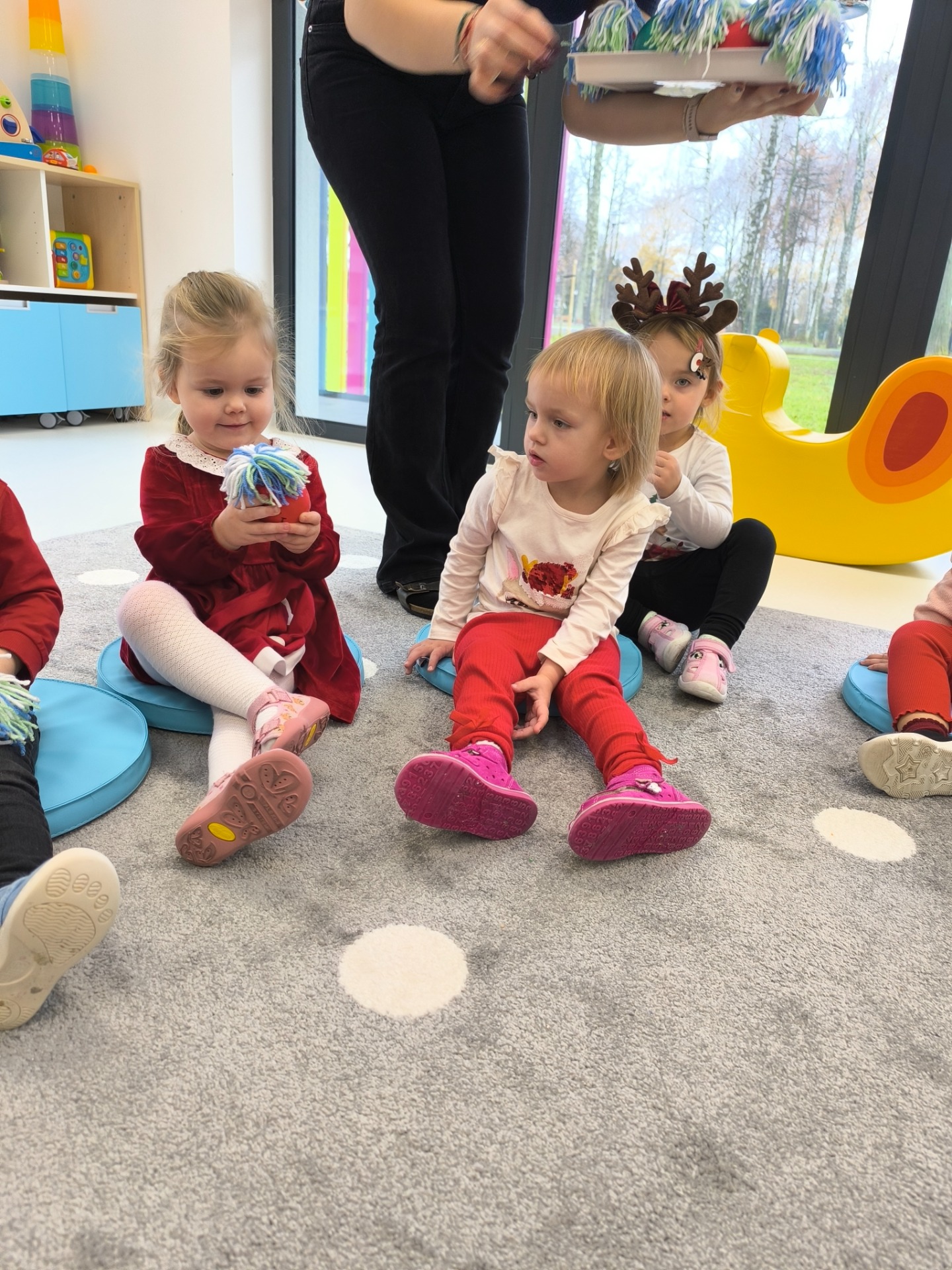 Choć dzieci nie brały udziału w tworzeniu, z wielkim zainteresowaniem obserwowały pracę cioć, dotykały włóczki, oglądały balony i czekały na swoje niespodzianki.