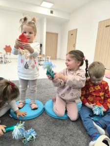 Cały proces był dla nich ciekawym, sensorycznym doświadczeniem, a gotowe gniotki wywołały mnóstwo radości i mikołajkowego uśmiechu.